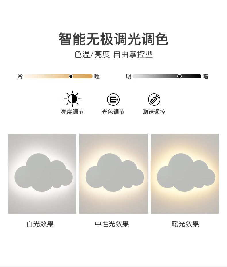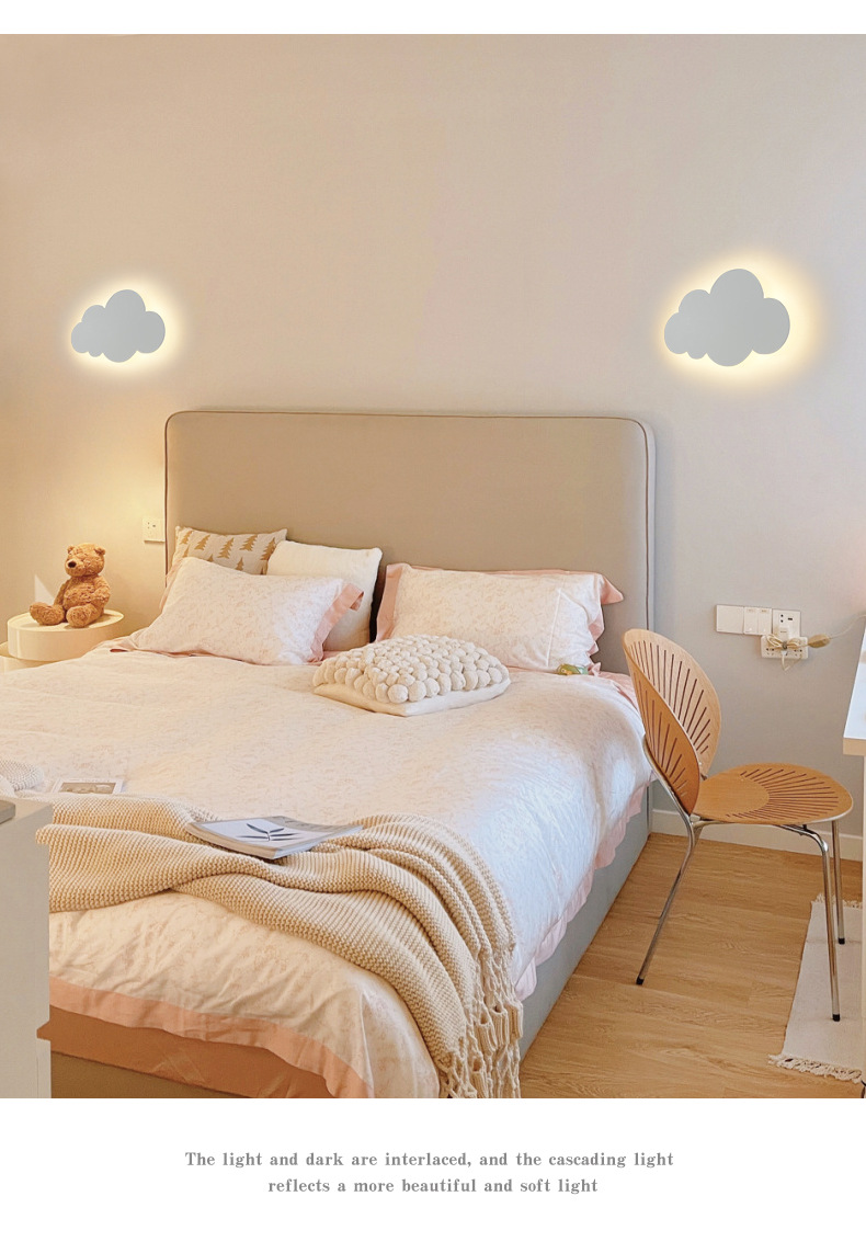 구름 벽 램프 북유럽 스타일 창조적 인 미니멀리스트 침대 옆 램프 소년과 소녀 어린이 방 침실을위한 현대 간단한 벽 램프