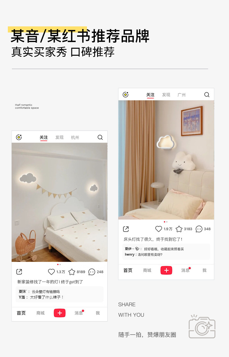 구름 벽 램프 북유럽 스타일 창조적 인 미니멀리스트 침대 옆 램프 소년과 소녀 어린이 방 침실을위한 현대 간단한 벽 램프스토어 가기