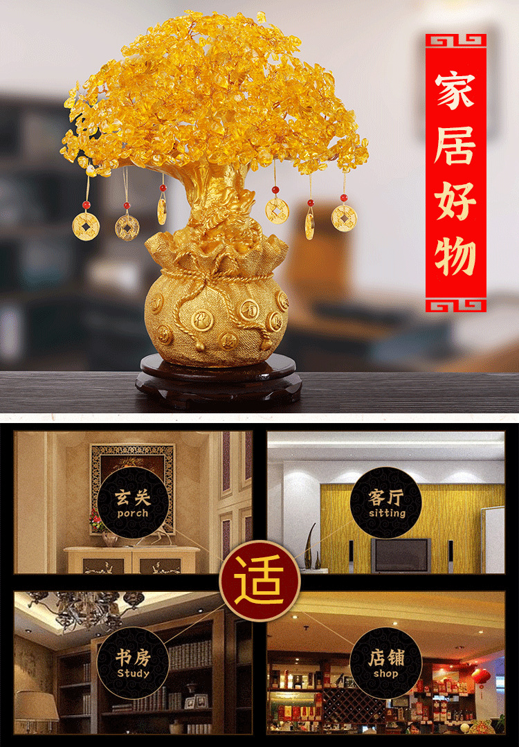 황수정 포춘 나무 행운의 장식품 홈 TV 와인 캐비닛 장식 거실 입구 현금 트리 오프닝 선물스토어 가기