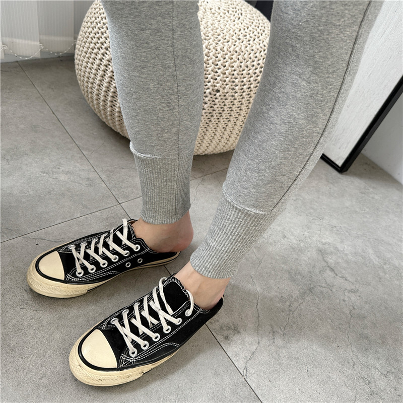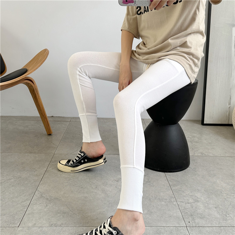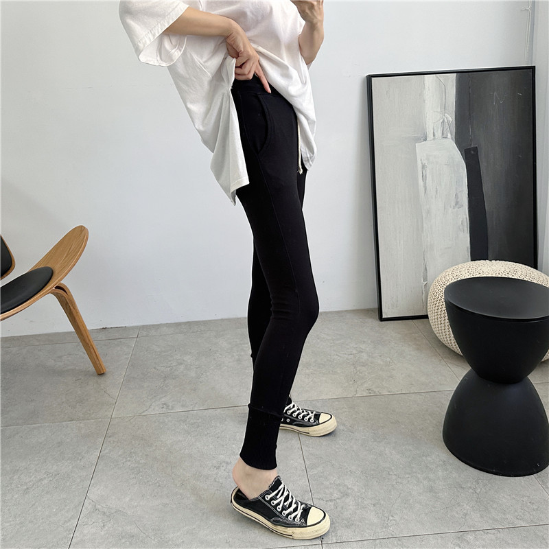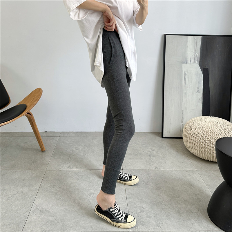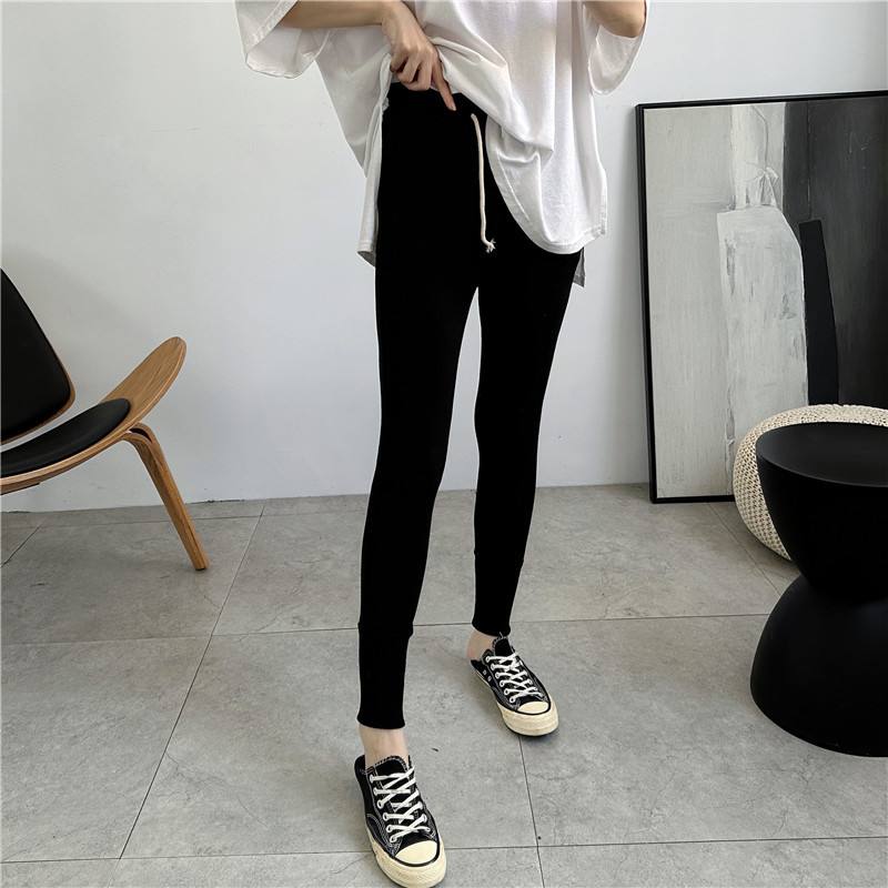 2023 봄과 가을 한국식 동대문 하이 웨이스트 드로스트링 나사산 레그인 코튼 베이스 발목 길이 팬츠 아웃포켓 여성용 팬츠