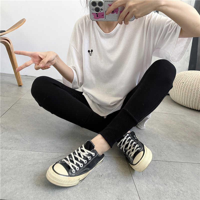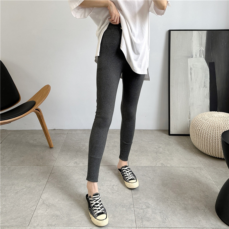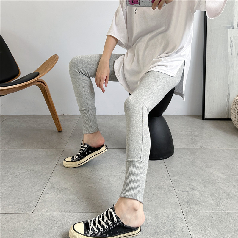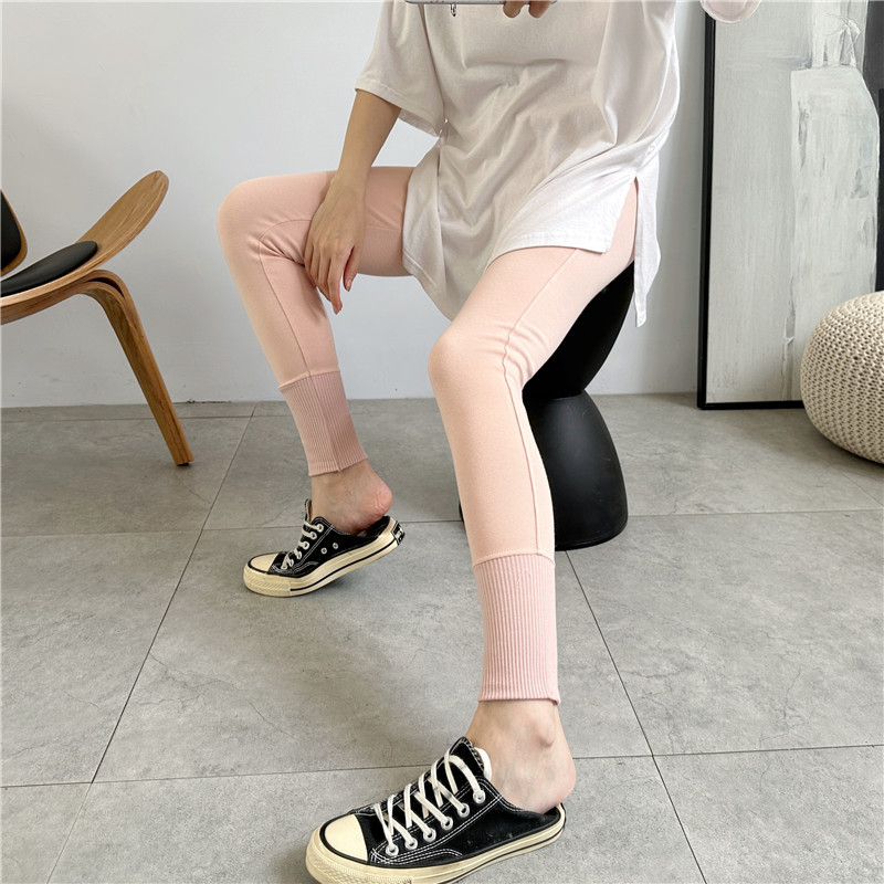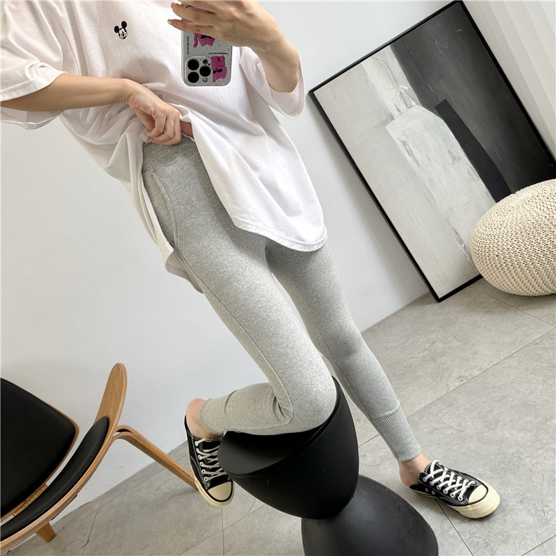 2023 봄과 가을 한국식 동대문 하이 웨이스트 드로스트링 나사산 레그인 코튼 베이스 발목 길이 팬츠 아웃포켓 여성용 팬츠