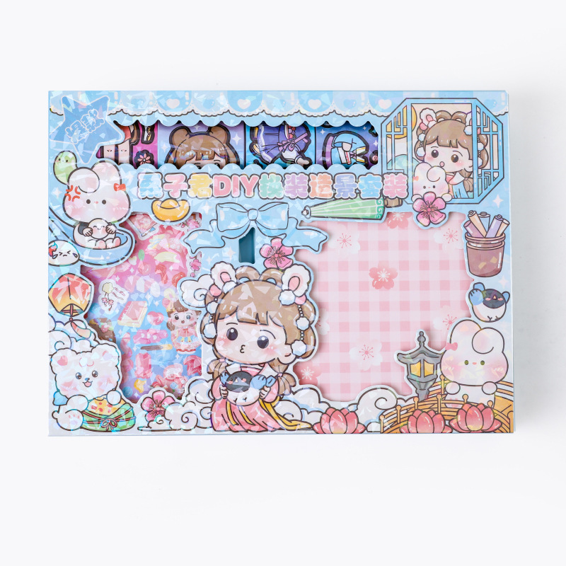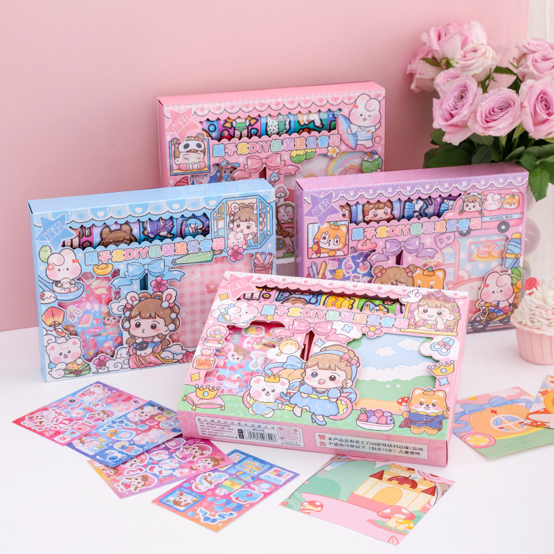 밤나무 왕 DIY 원피스 풍경 세트 공주 다양한 옷장 장면 손 계정 Goo 카드 스티커 재료 선물 상자