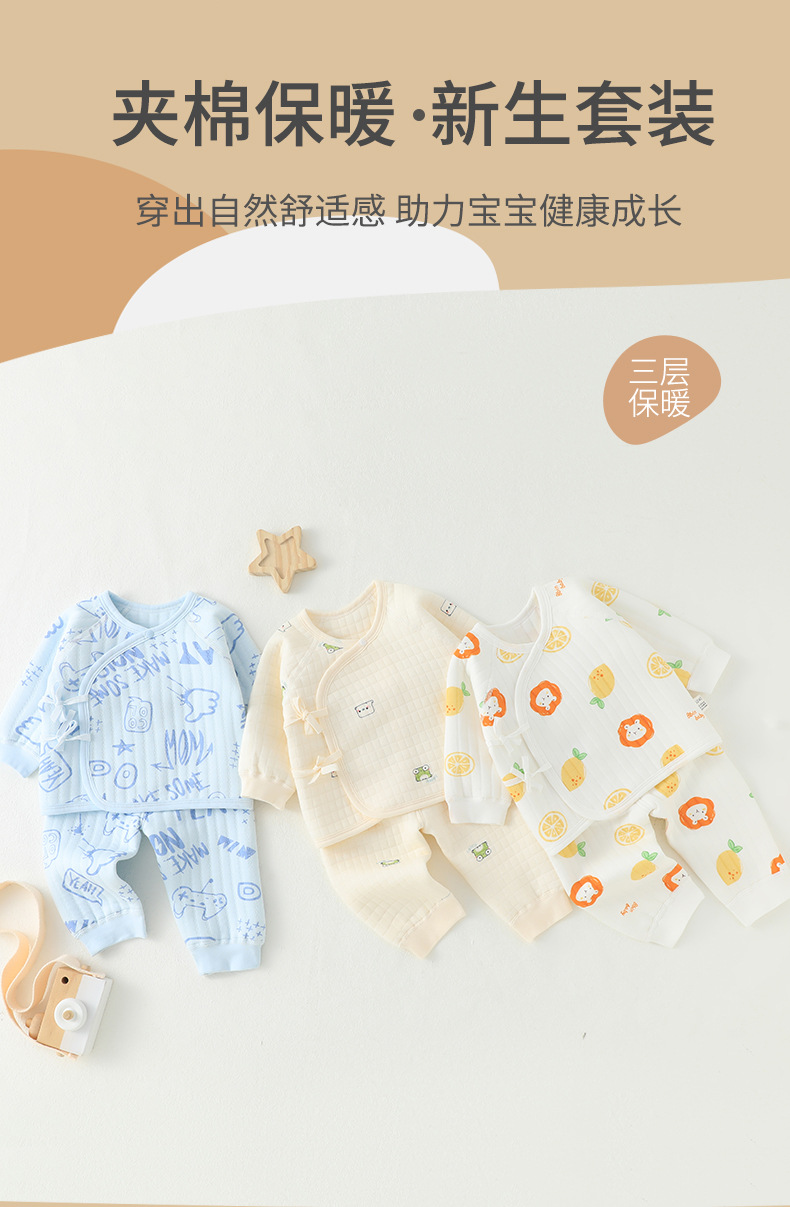 3겹 보온 신생아 의류, 순면, 신생아 가을 겨울 스님 속옷, 교복 세트, 편안함스토어 가기