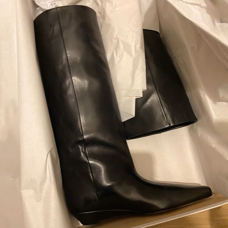 소가죽 버전 ~ 통통녀 가죽 포인트 레트로 고층 나이트 부츠 여성용 두꺼운 힐 가죽 힐 슬림하지만 무릎 긴 부츠