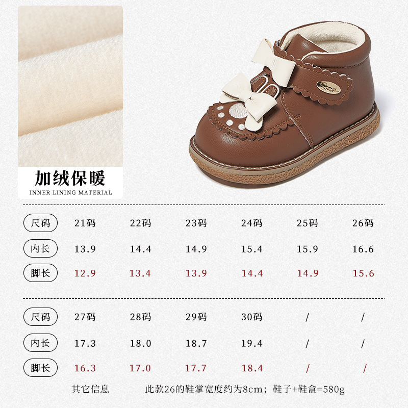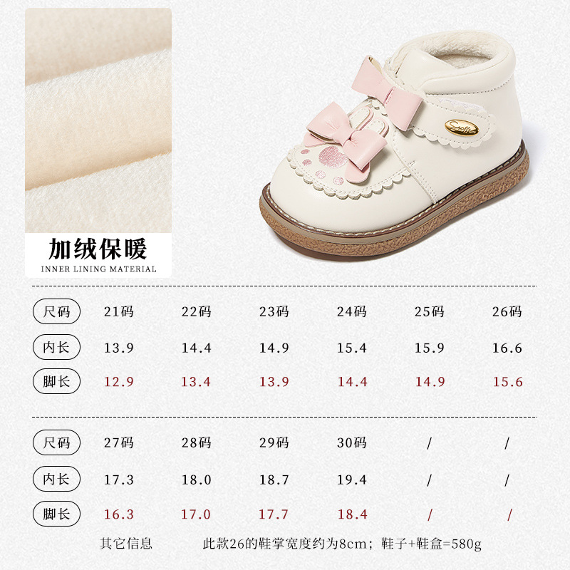 Snafy 여아 가죽 부츠 2025 가을, 겨울 신상 아동 공주 따뜻한 플러스 벨벳 부츠 아기 가죽 신발스토어 가기