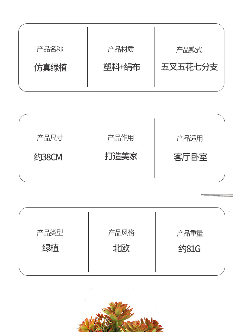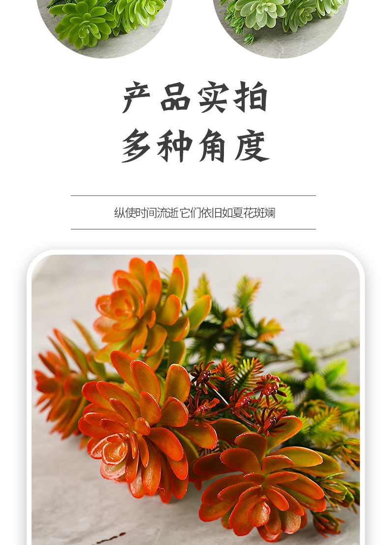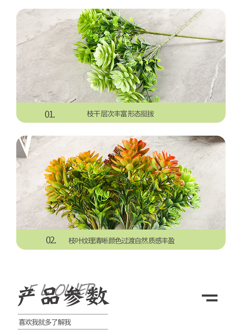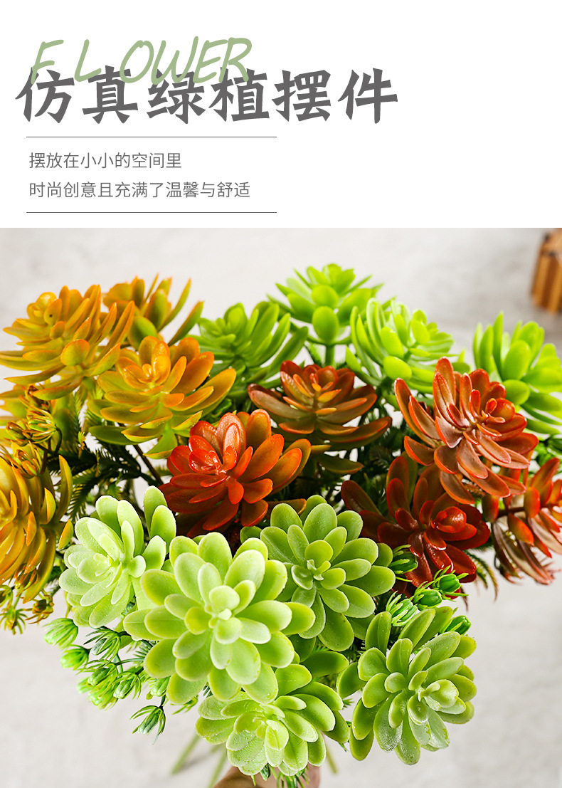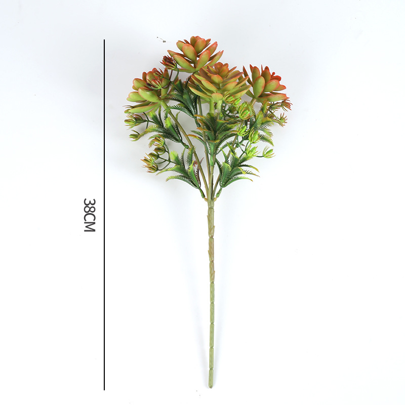 새로운 높은 가지 5 머리 다육 식물 로터스 인공 다육 식물 플라스틱 인공 꽃 화분 부드러운 장식 액세서리