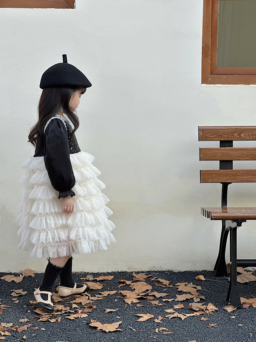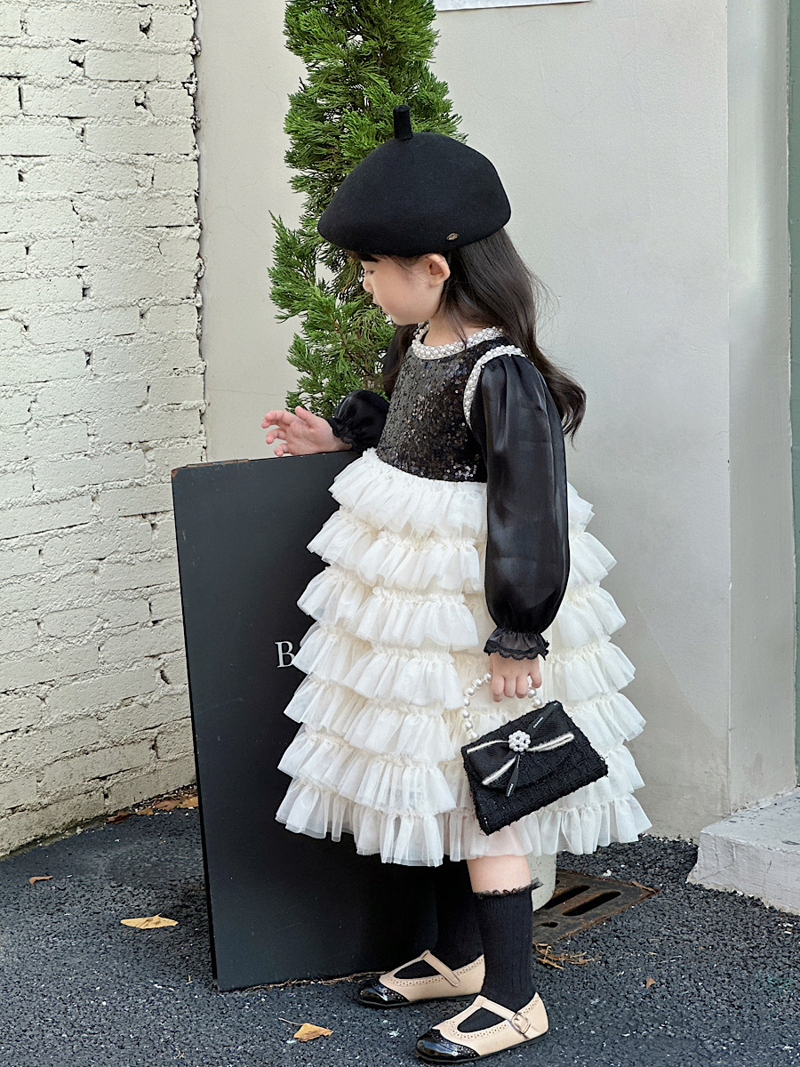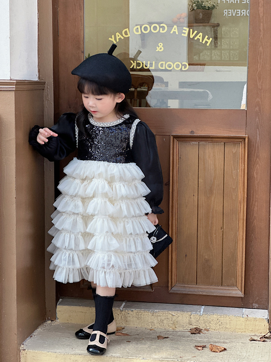 여자 23 가을과 겨울 원피스 중공업 메쉬 투투 스커트 긴 소매 구슬 바느질 케이크 스커트 스타일리스트 원피스스토어 가기