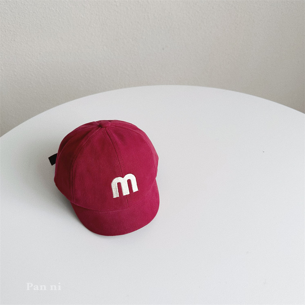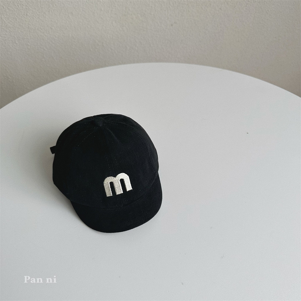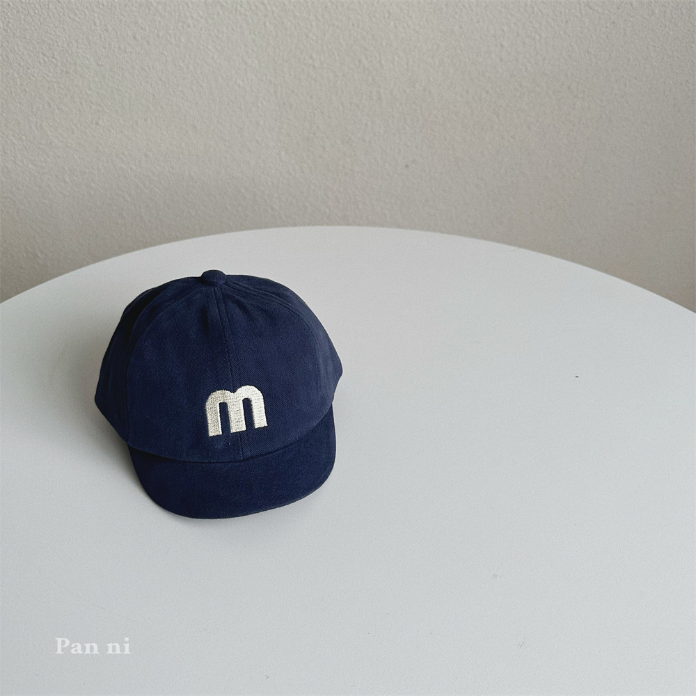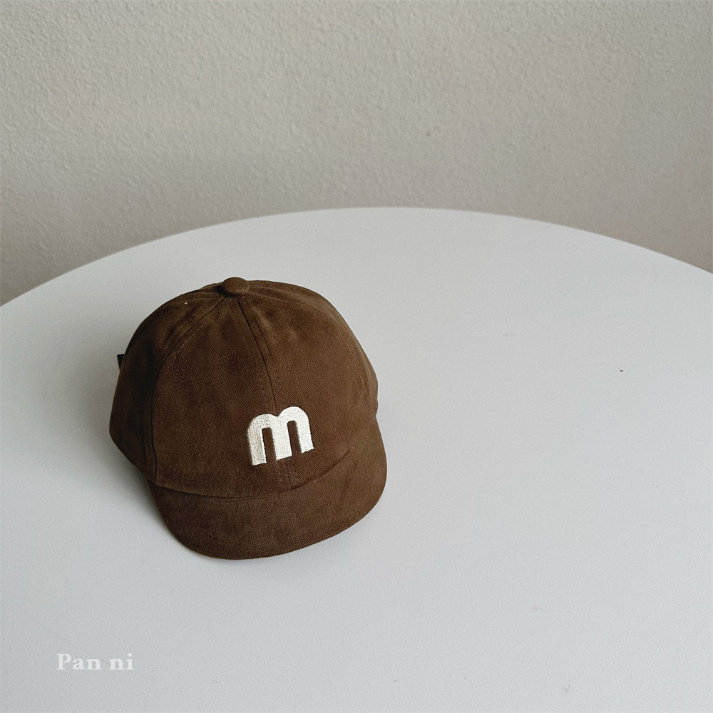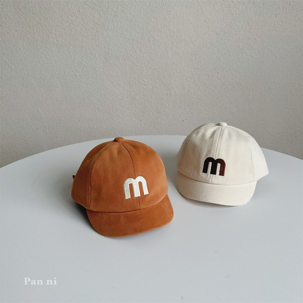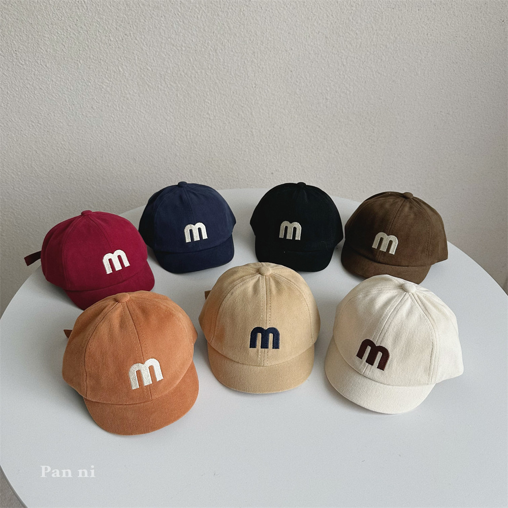 어린이 아기 모자 가을 일본식 하라주쿠 스타일 아기 모자 맞춤 자수 M 편지 짧은 챙 야구 모자