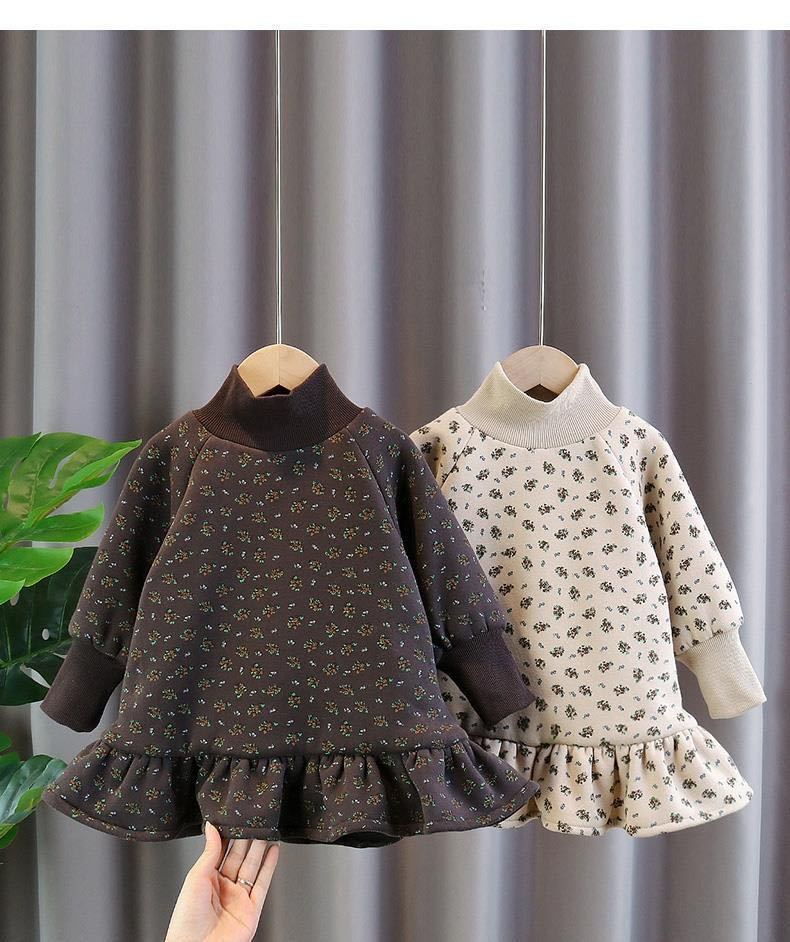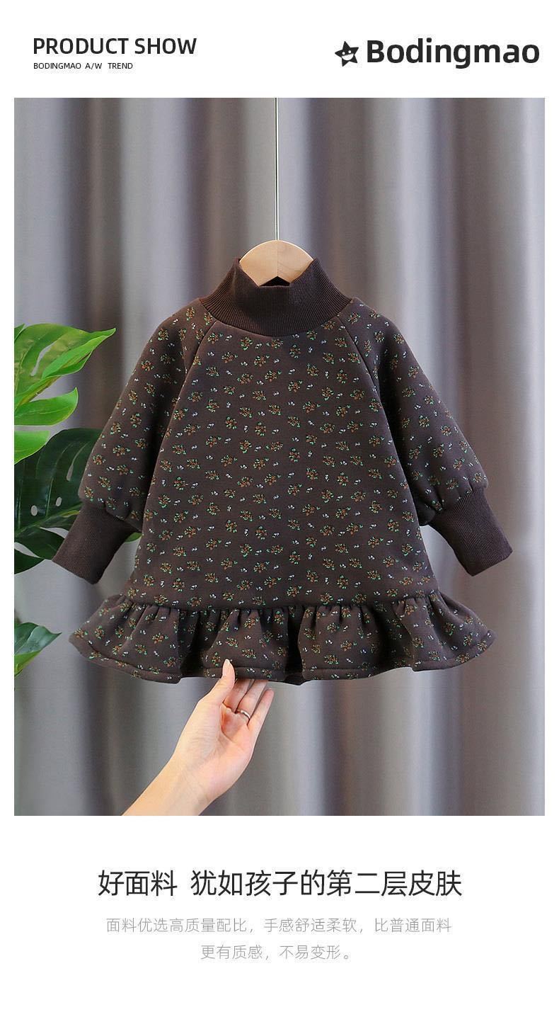여아 가을 겨울 스웨트셔츠 드레스 2025 새로운 한국 스타일 아동용 벨벳 두꺼운 드레스 여아 겨울 의류 유행 공주스토어 가기
