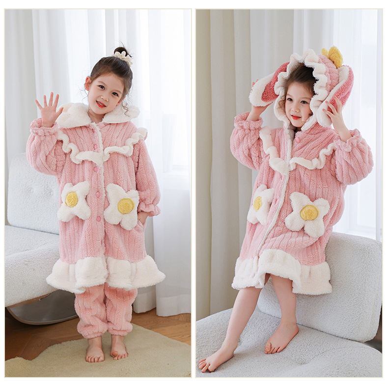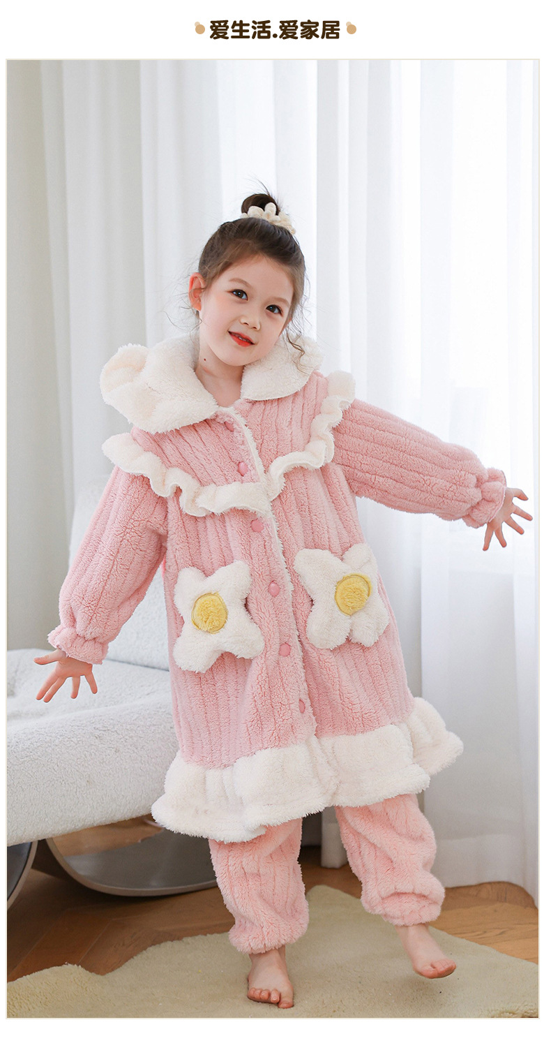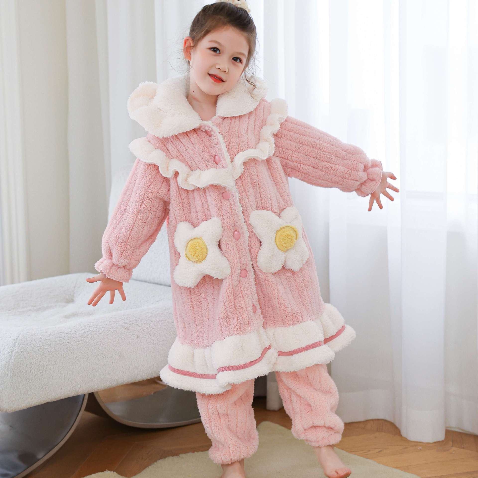 여자 겨울 두꺼운 플란넬 잠옷 작은 소녀 부모-자식 어머니-딸 공주 잠옷 어린이 산호 양털 가정 옷스토어 가기