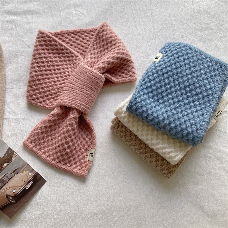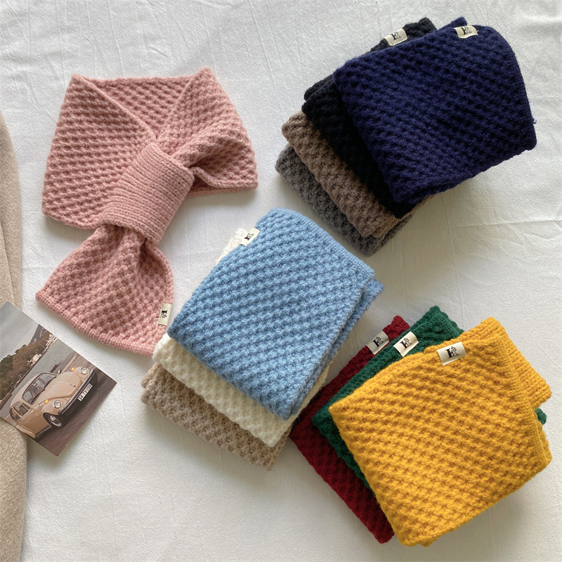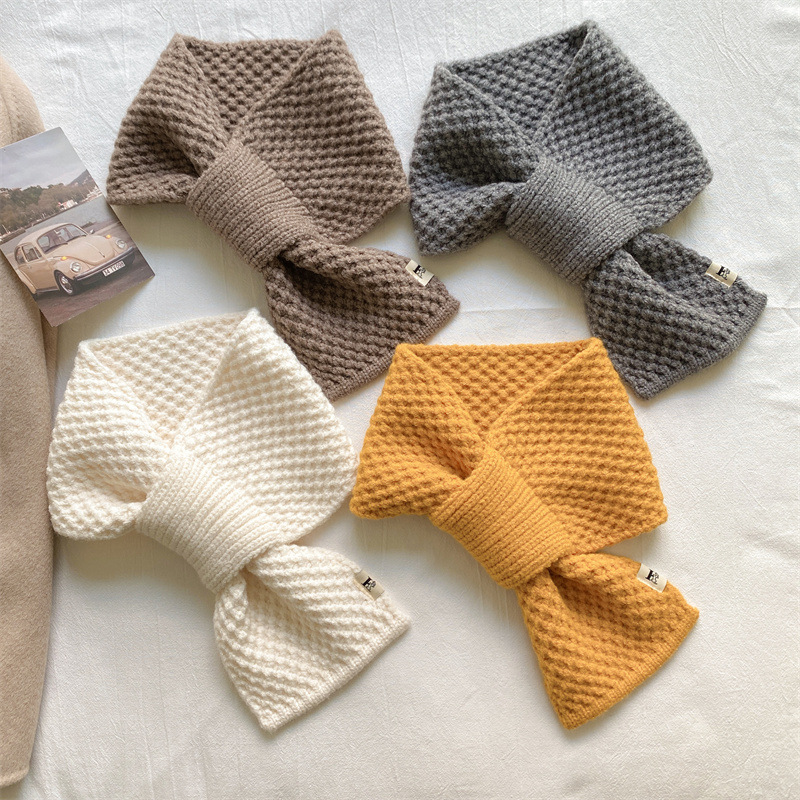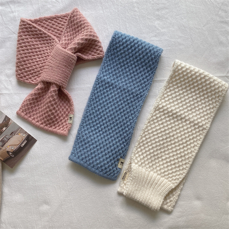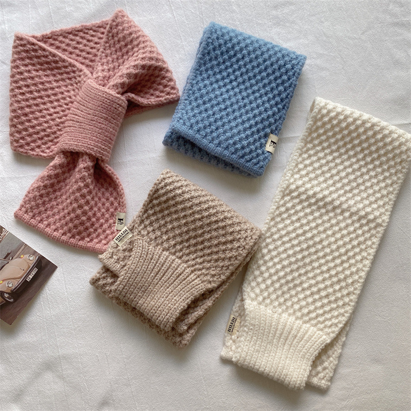 니트 울 스카프 여성용 한국 스타일 다용도 따뜻한 단색 인기 레이지 시크 크로스 스카프 가을 겨울 신상