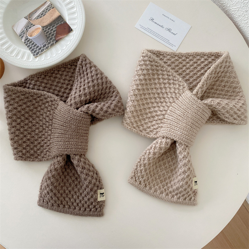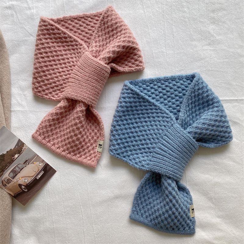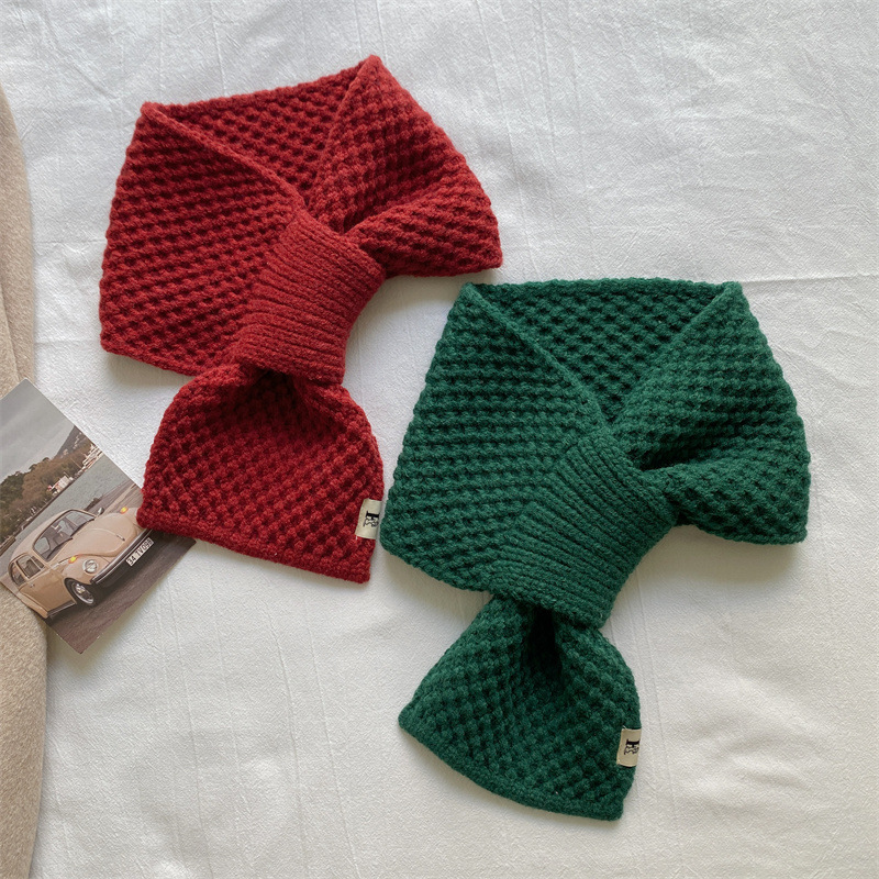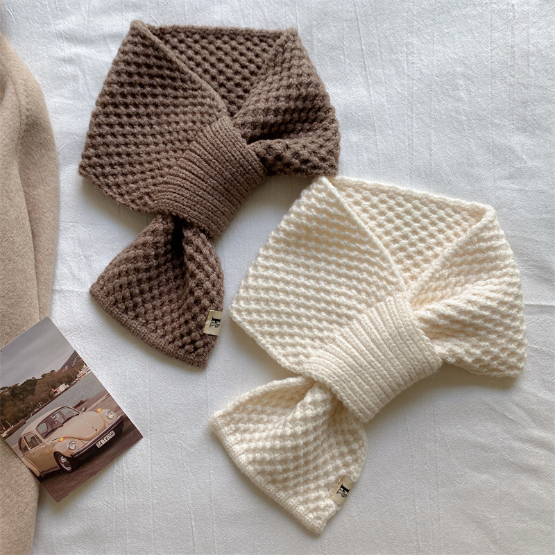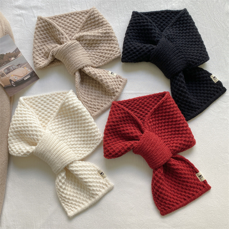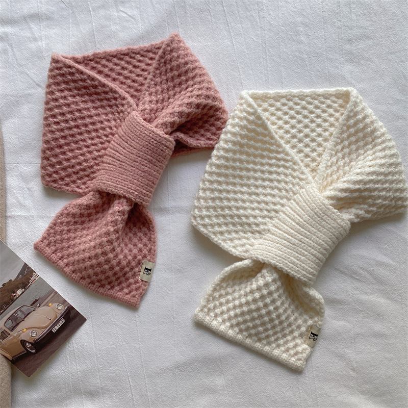 니트 울 스카프 여성용 한국 스타일 다용도 따뜻한 단색 인기 레이지 시크 크로스 스카프 가을 겨울 신상
