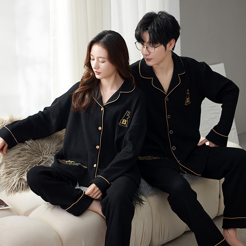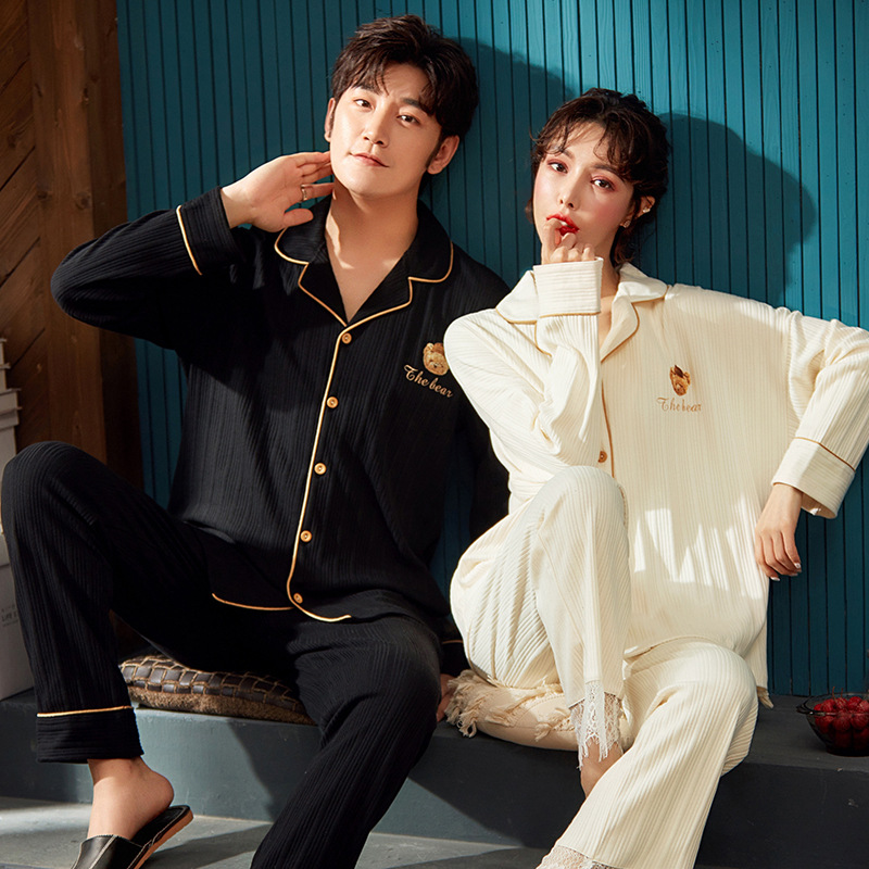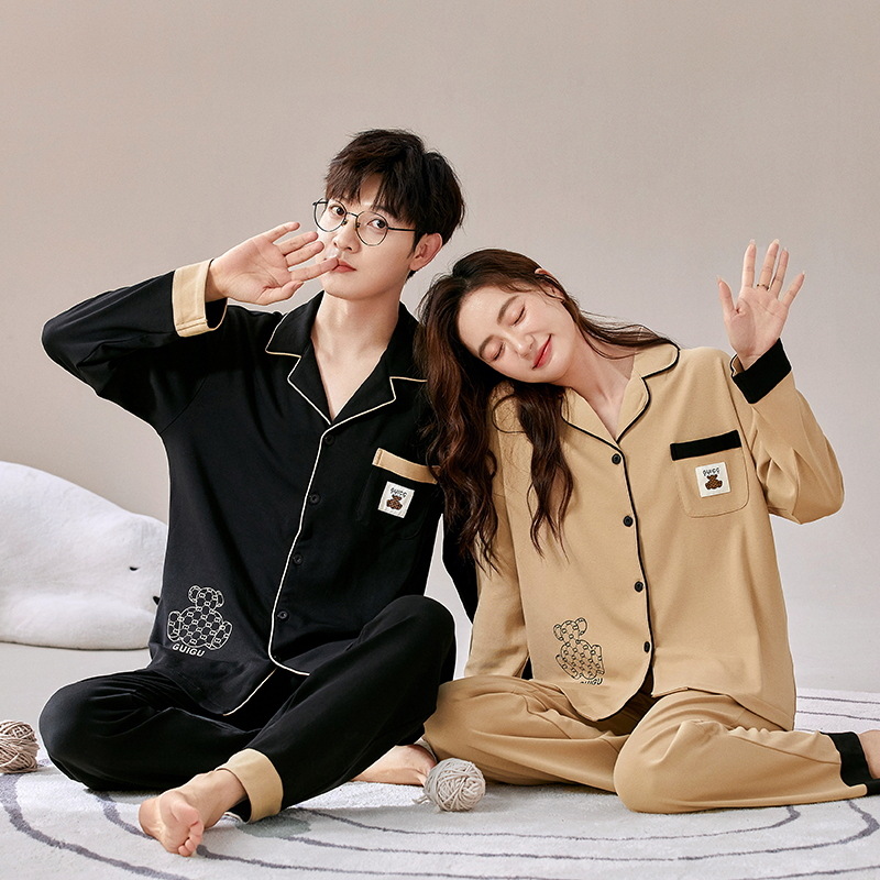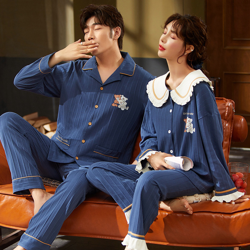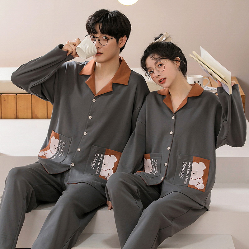 커플 잠옷 여자의 가을과 겨울 카디건 긴 소매 면 한국 만화 남자와 여자의 홈 옷 세트 세대의 머리카락
