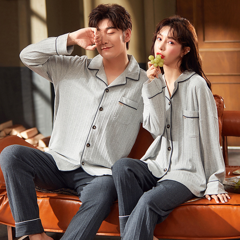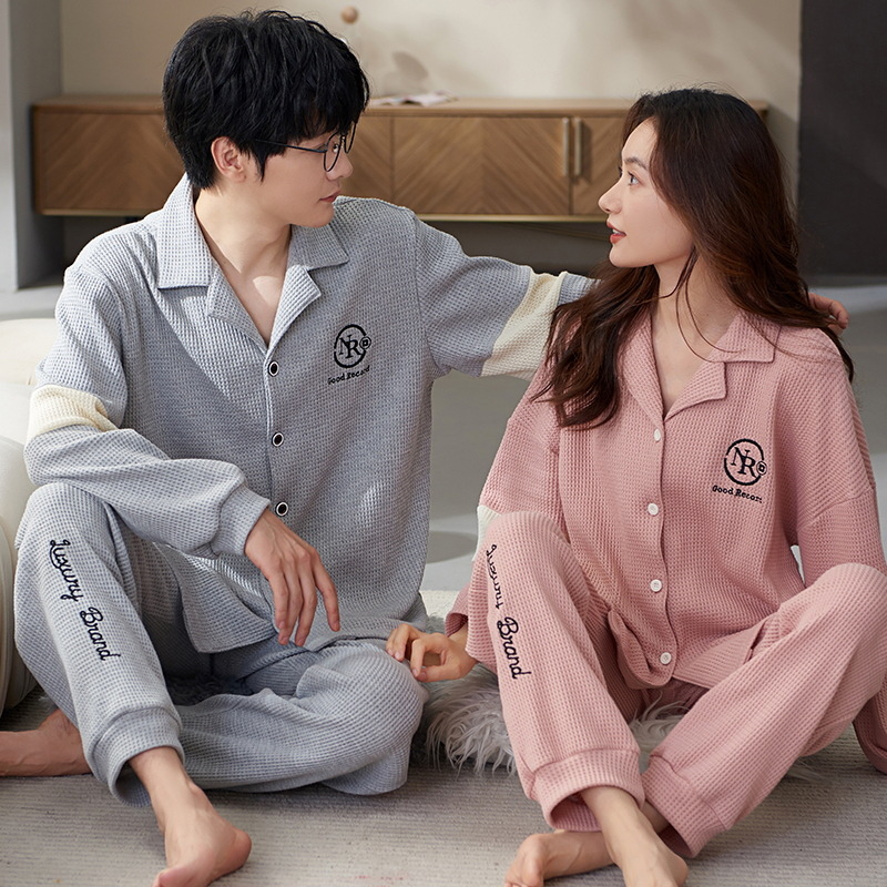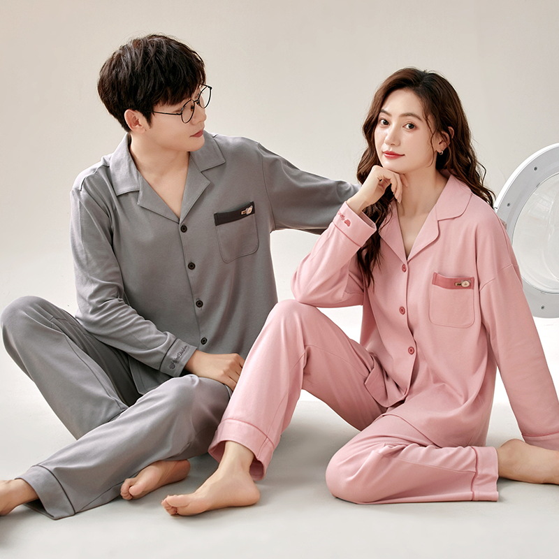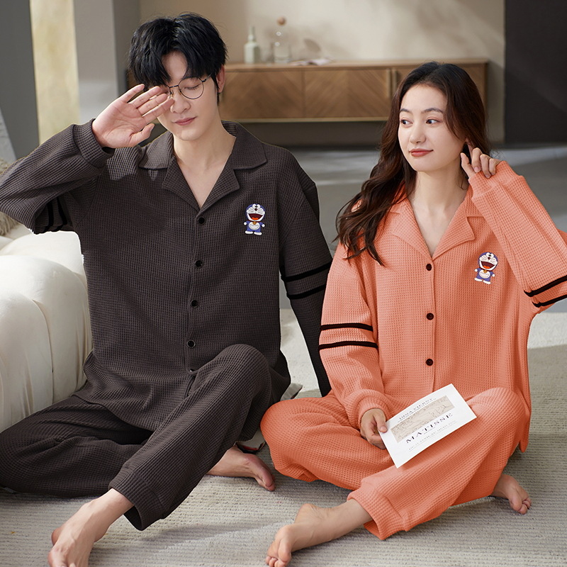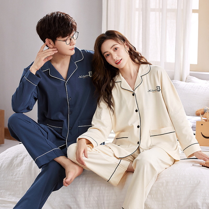 커플 잠옷 여자의 가을과 겨울 카디건 긴 소매 면 한국 만화 남자와 여자의 홈 옷 세트 세대의 머리카락스토어 가기