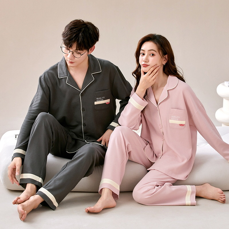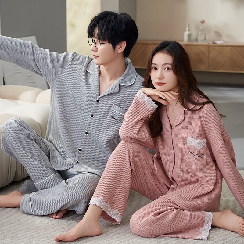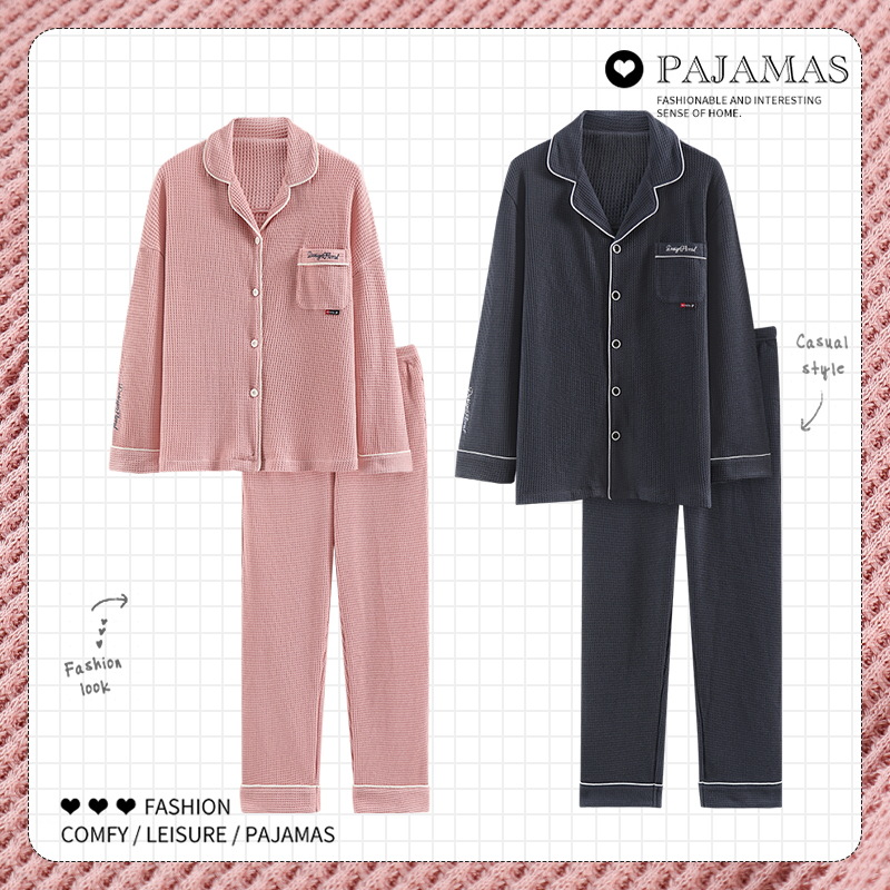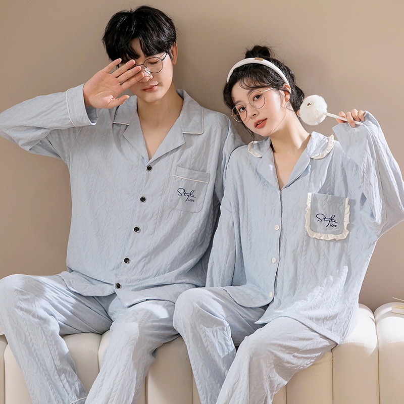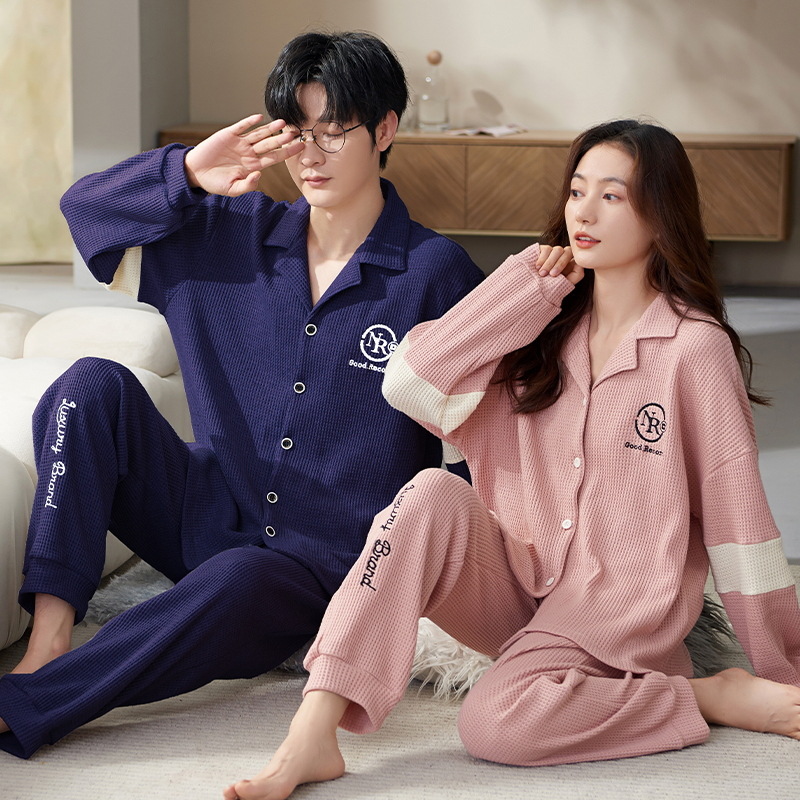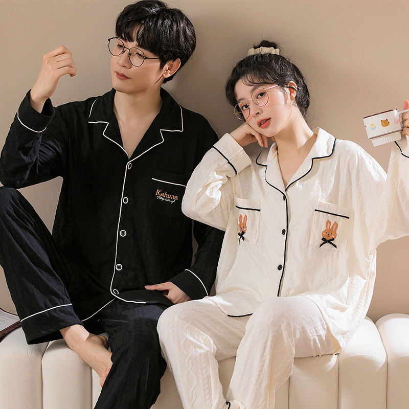 커플 잠옷 여자의 가을과 겨울 카디건 긴 소매 면 한국 만화 남자와 여자의 홈 옷 세트 세대의 머리카락스토어 가기