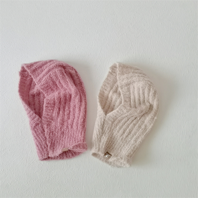 소년과 소녀를위한 어린이 모자 가을과 겨울의 한국어 버전 모란디 컬러 울 스카프 원피스 따뜻한 니트 귀 보호 울 모자