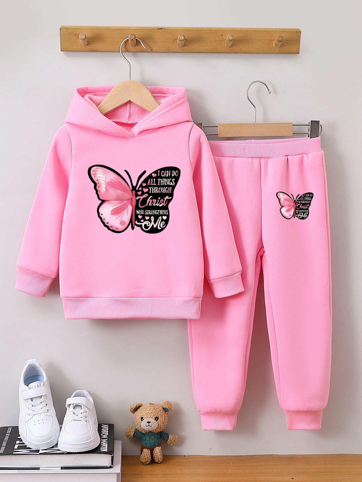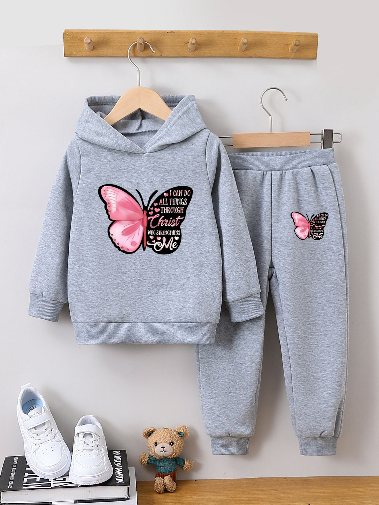 대외 무역 도매 여자 패션 스웨터 투피스 만화 어린이의 귀여운 나비 가을과 겨울 기모 풀오버 세트