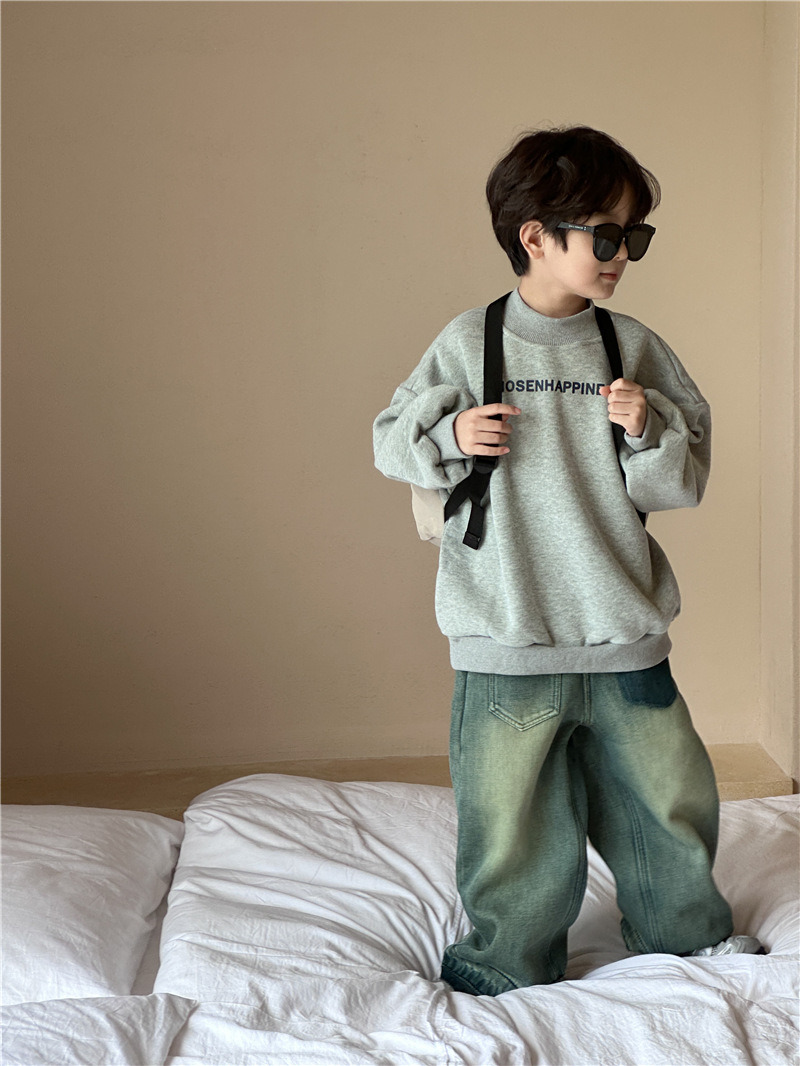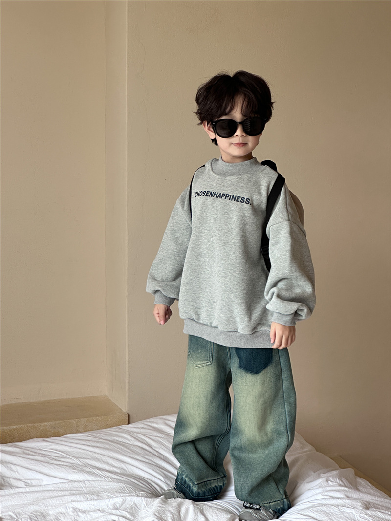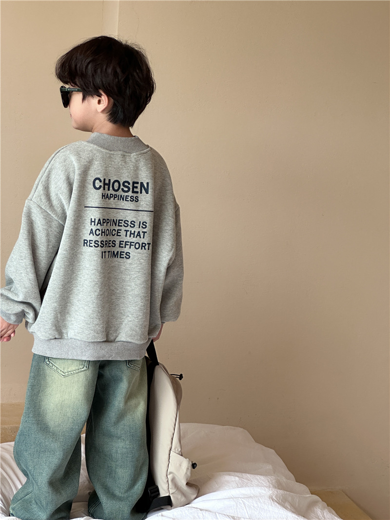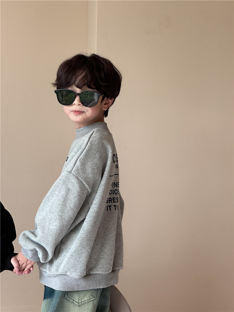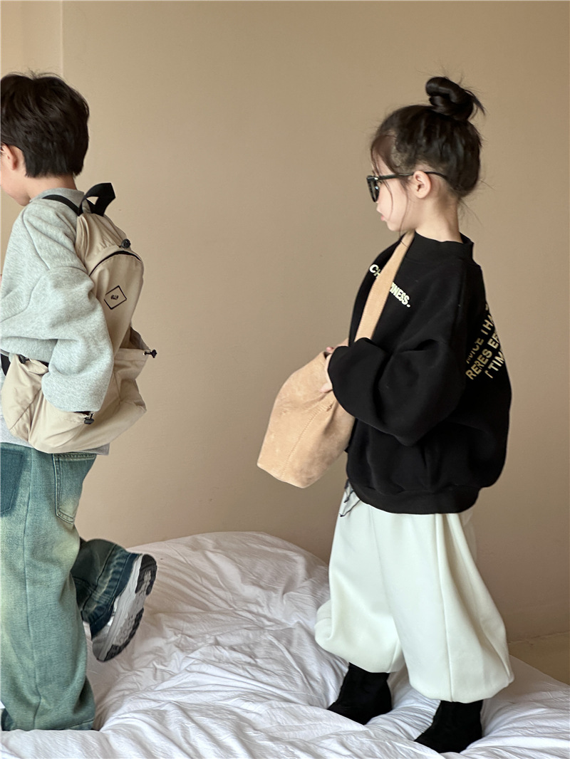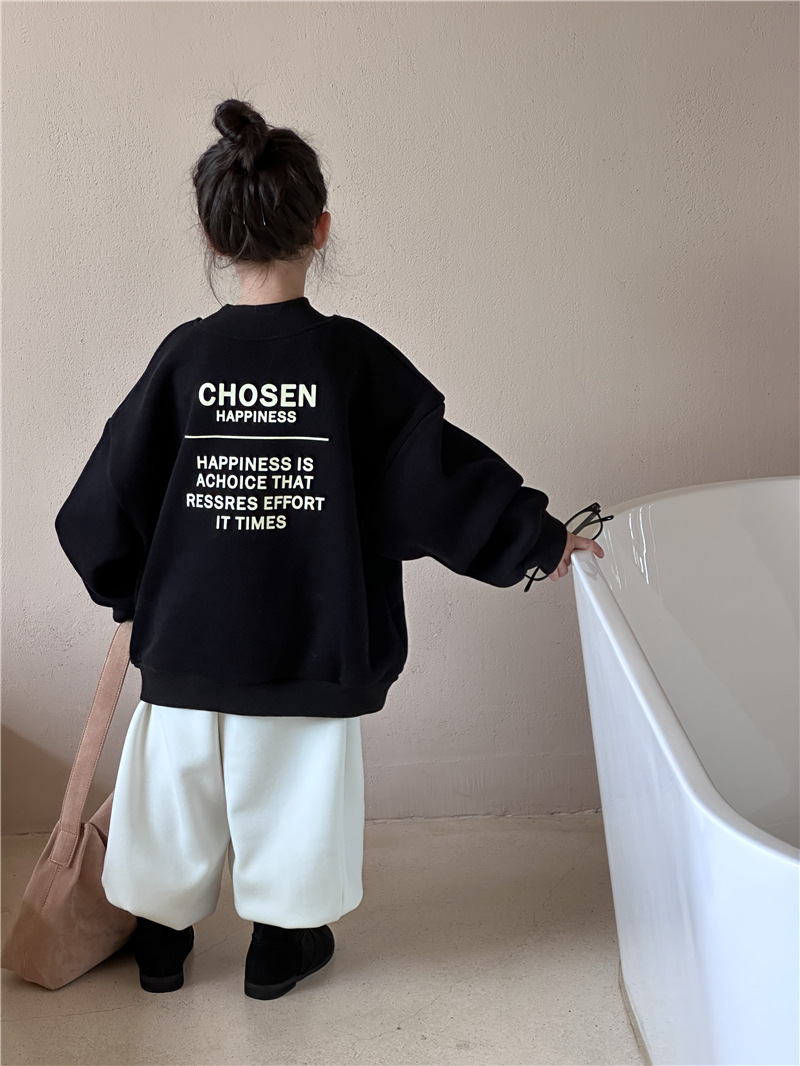 2025 겨울 신상 아동복 한국 스타일 아동용 플리스 스웨트셔츠 남녀공용 앞뒤 레터링 반하이넥 풀오버 상의