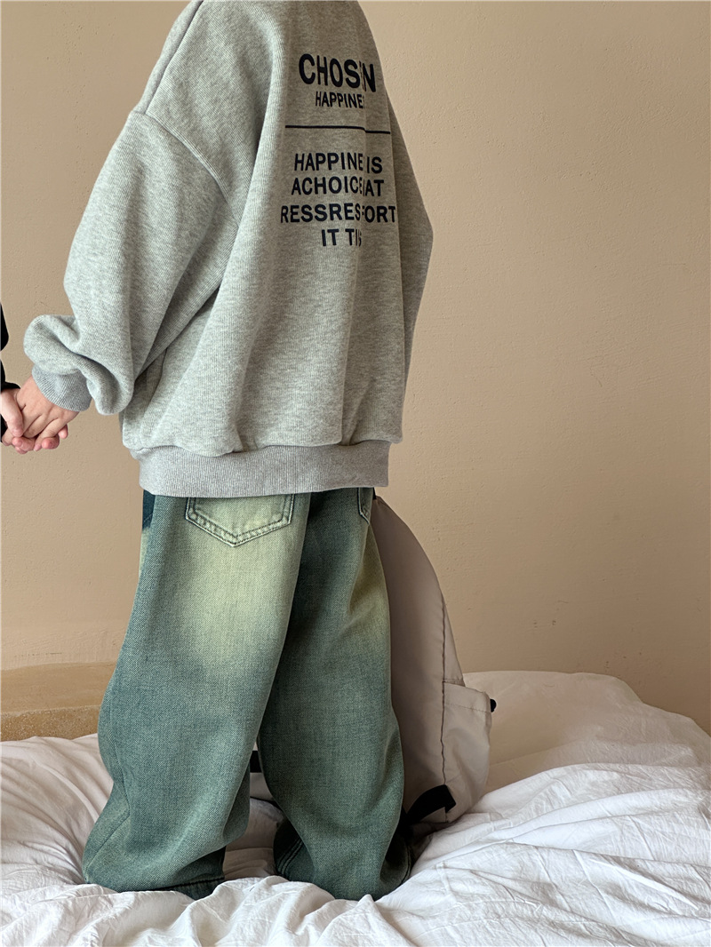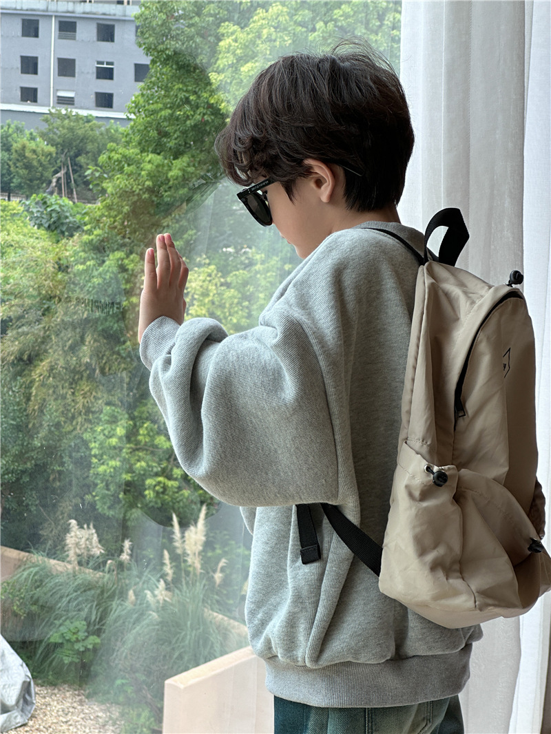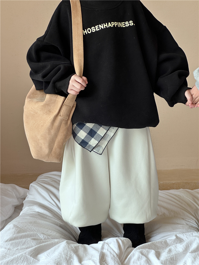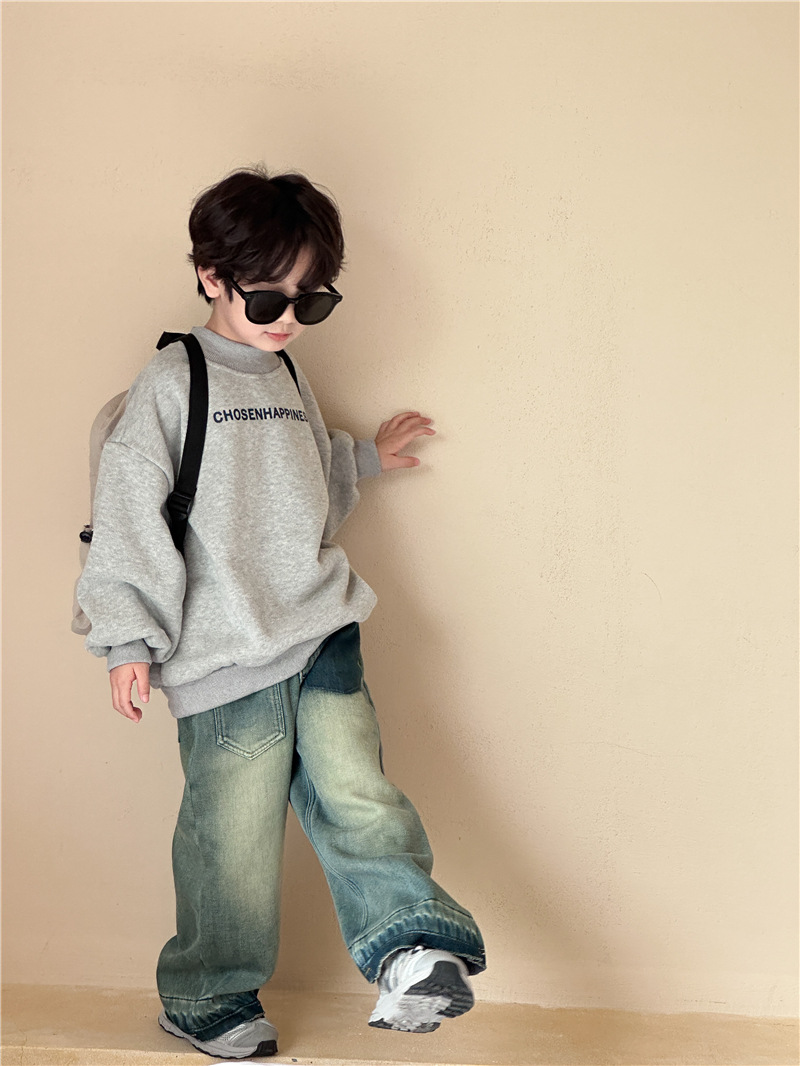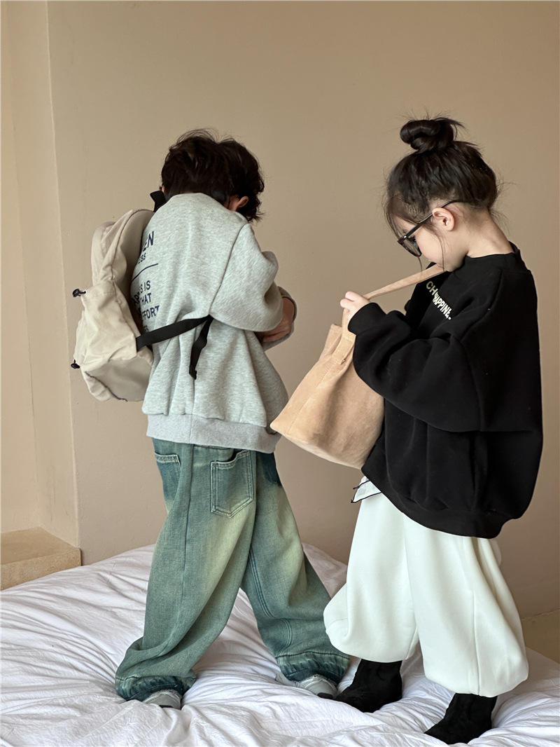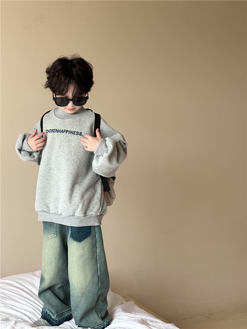 2025 겨울 신상 아동복 한국 스타일 아동용 플리스 스웨트셔츠 남녀공용 앞뒤 레터링 반하이넥 풀오버 상의