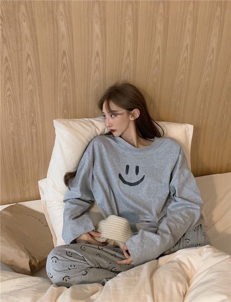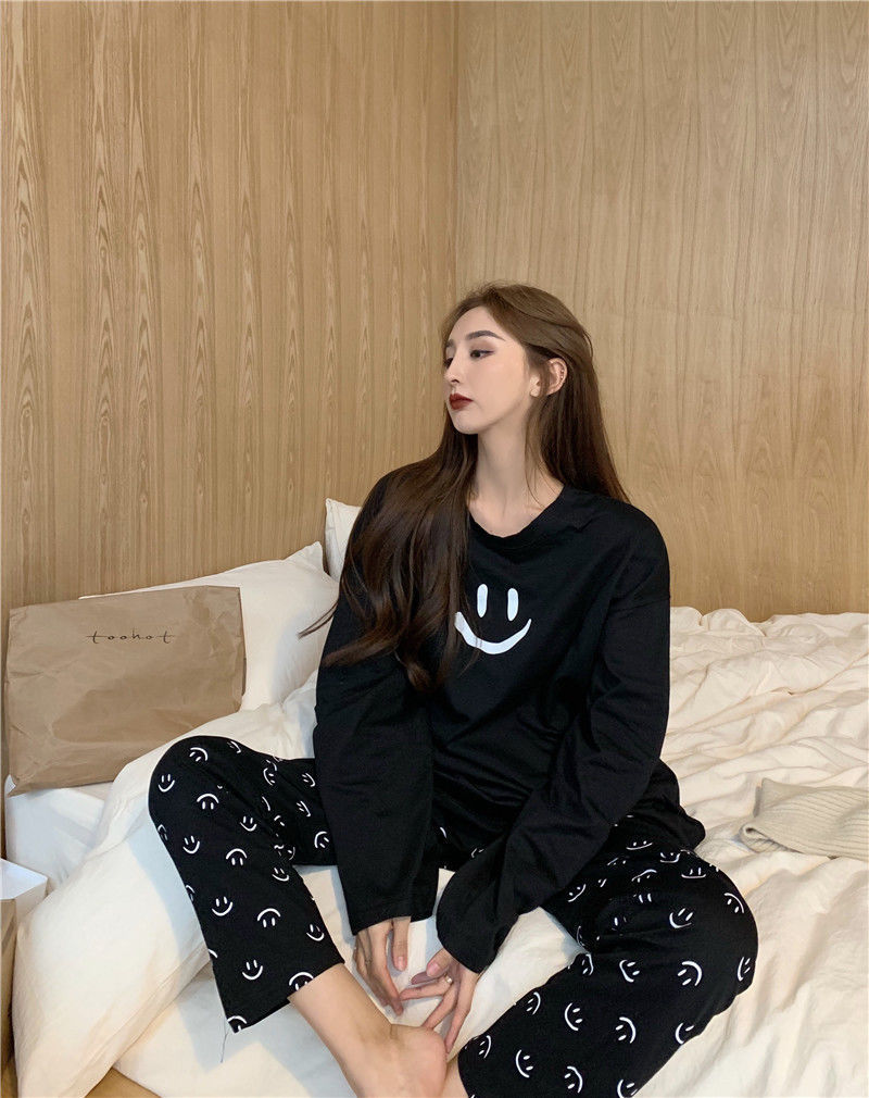 2023 얇은 잠옷 여자의 가을과 겨울 긴팔 바지 투피스 세트 캐주얼 느슨한 간단한 한국 스타일 가정 옷스토어 가기