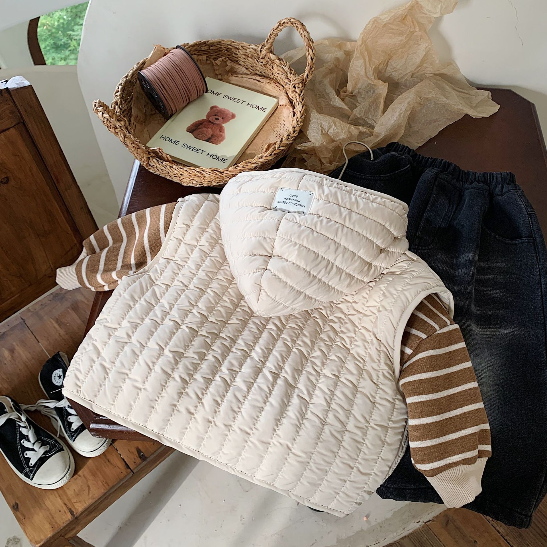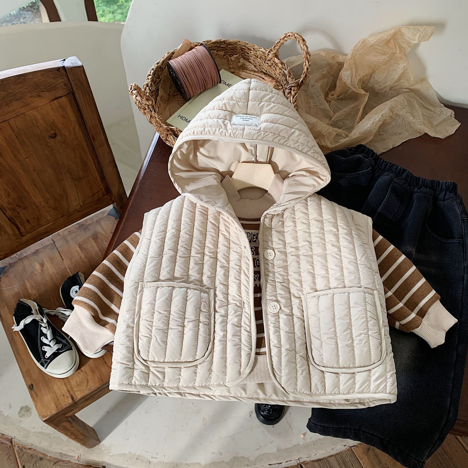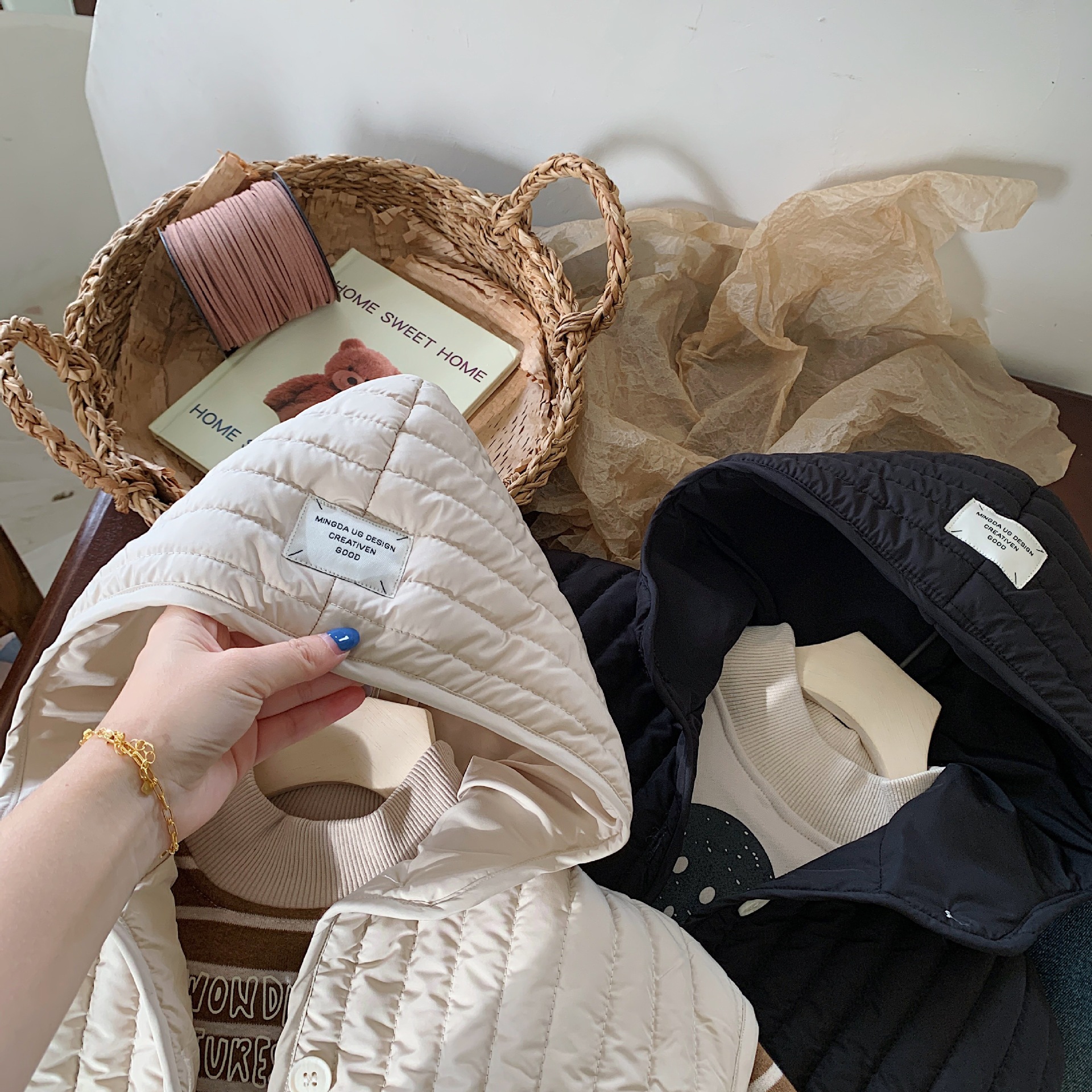어린이 누비면 후드 조끼 가을과 겨울 아동복 소년 소녀 용 한국식 스트라이프 라벨 코트 루즈탑스토어 가기
