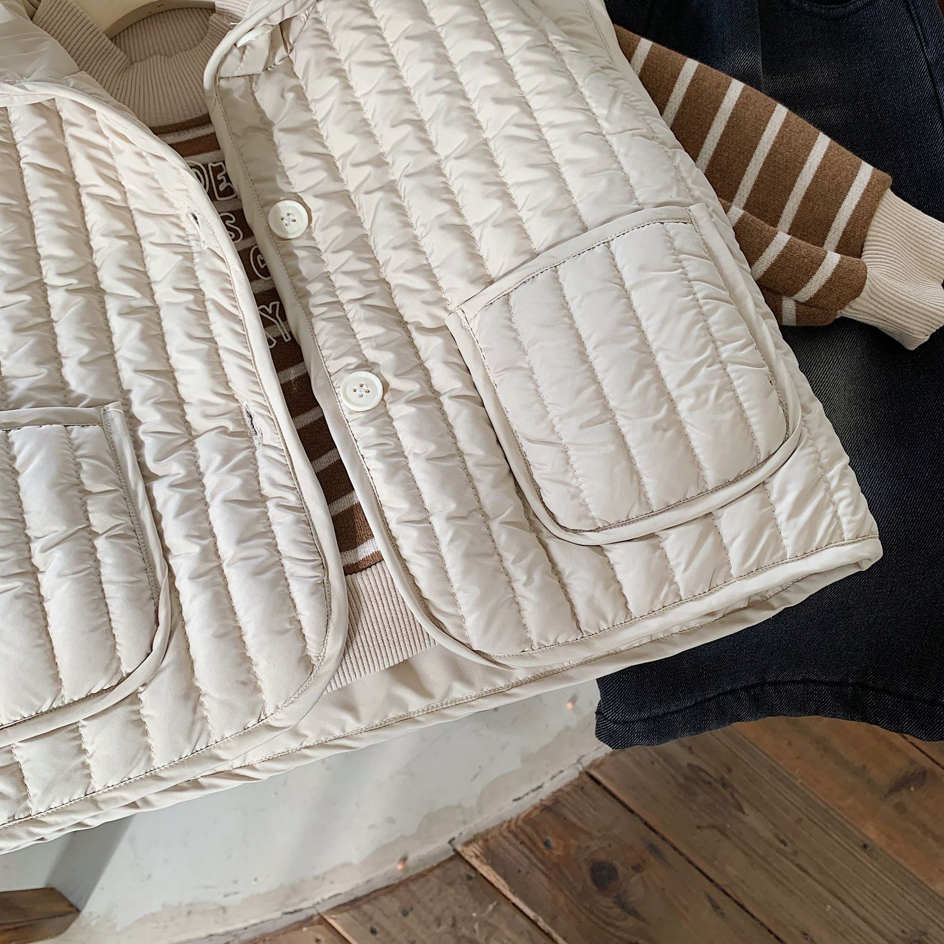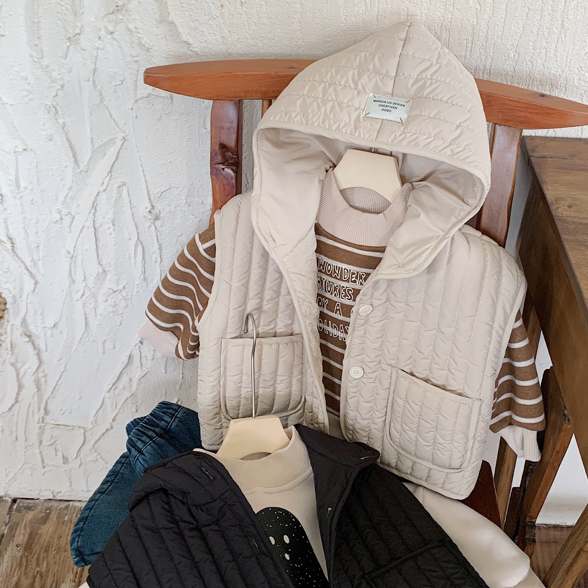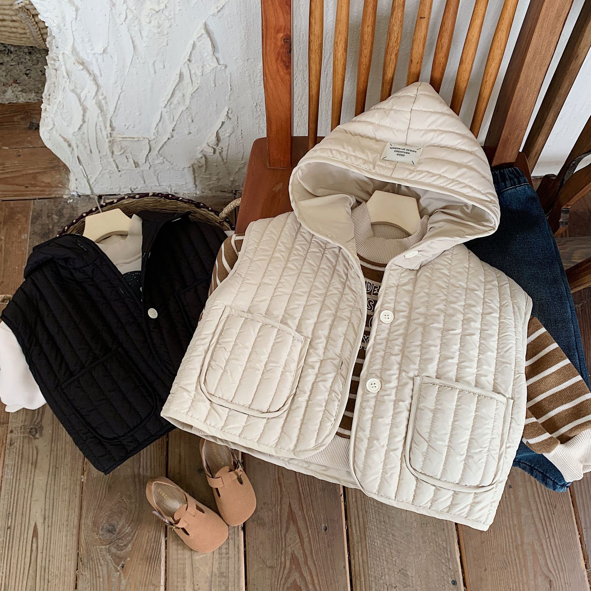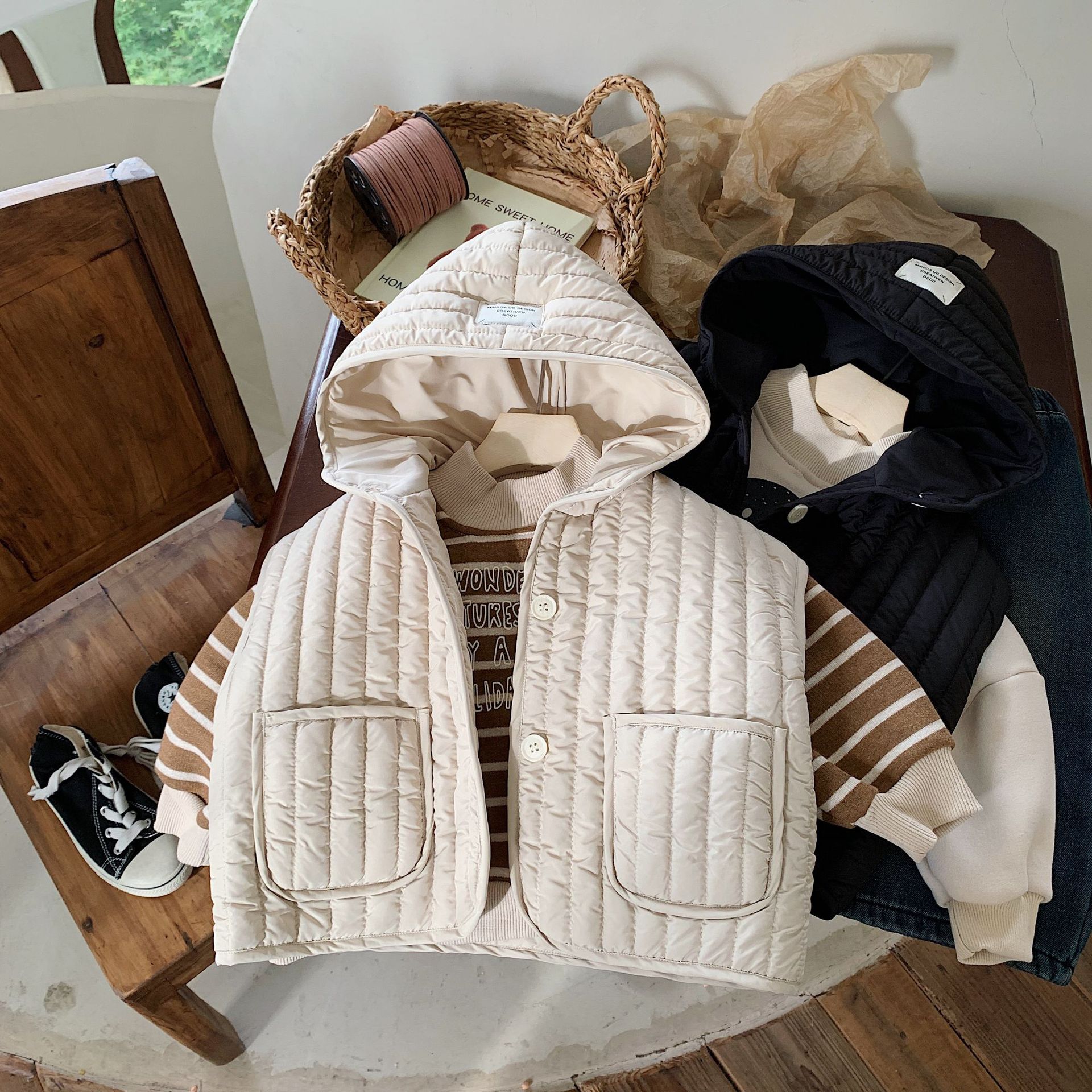 어린이 누비면 후드 조끼 가을과 겨울 아동복 소년 소녀 용 한국식 스트라이프 라벨 코트 루즈탑스토어 가기