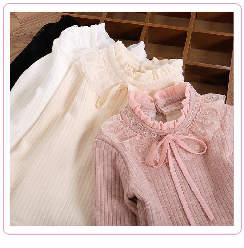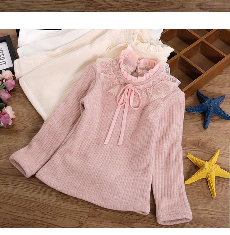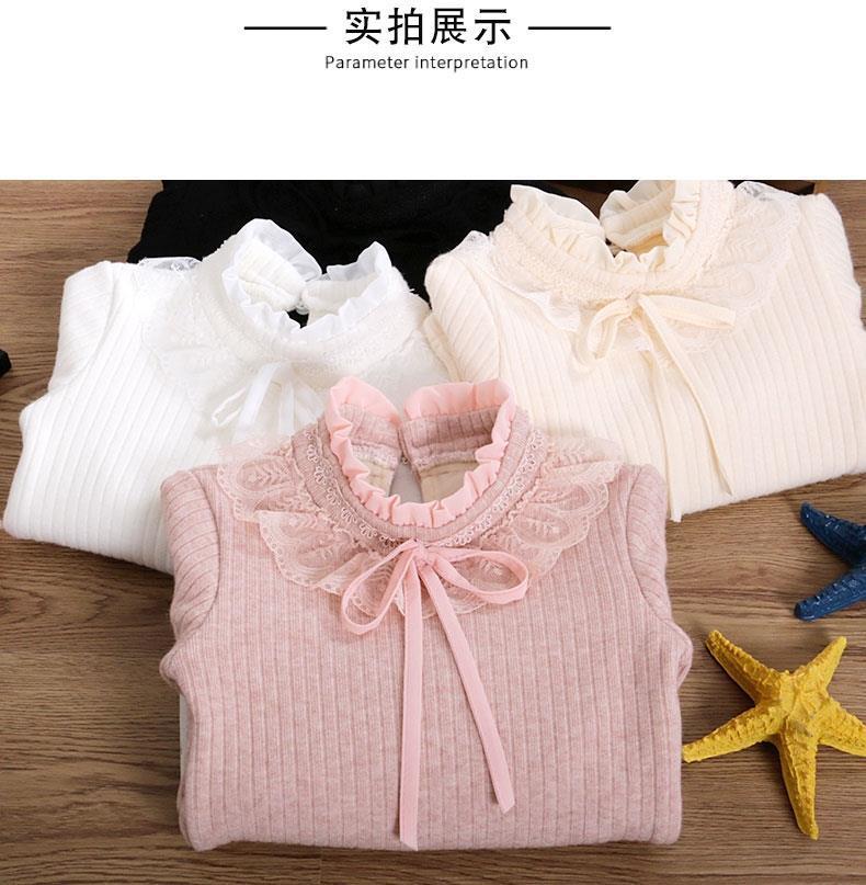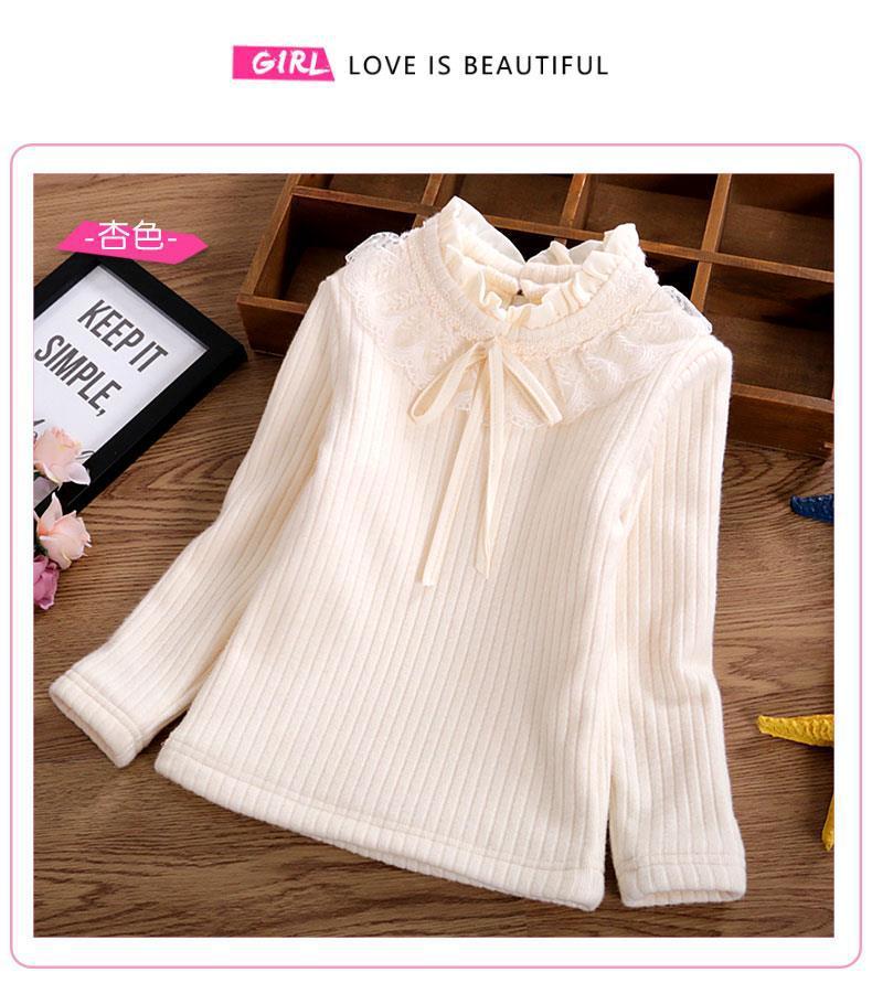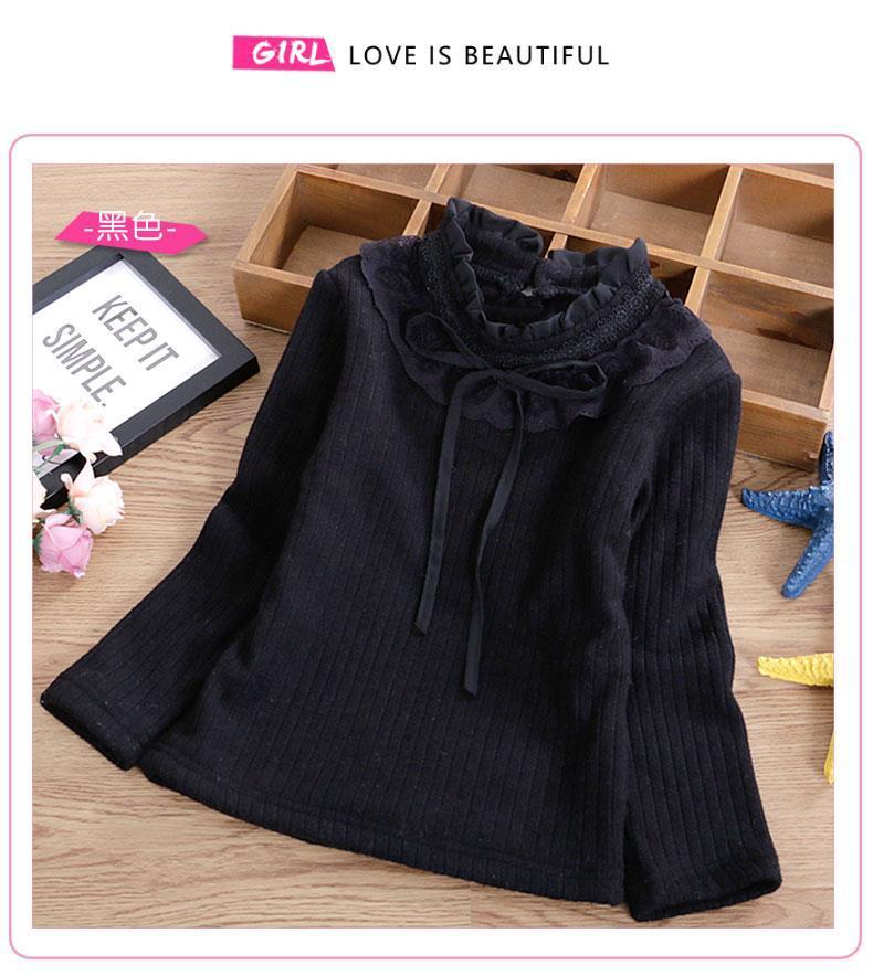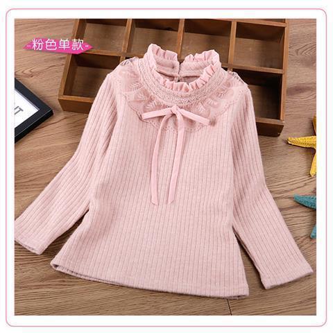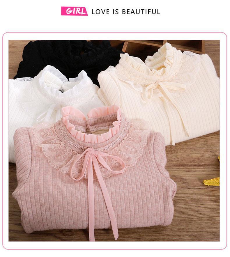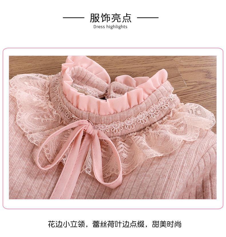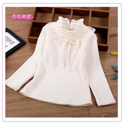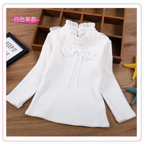 여아 하의 셔츠 가을과 겨울 원피스 어린이 서양 스타일 레이스 칼라 탑 중간 및 큰 아이 여아 니트 긴 소매 티셔츠 겨울