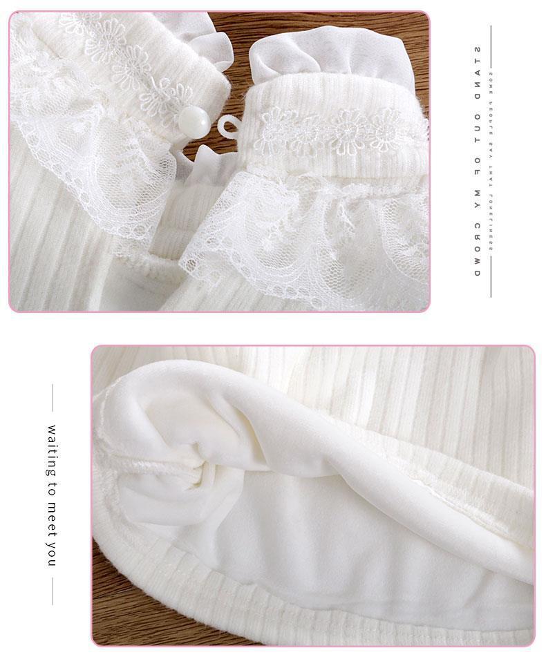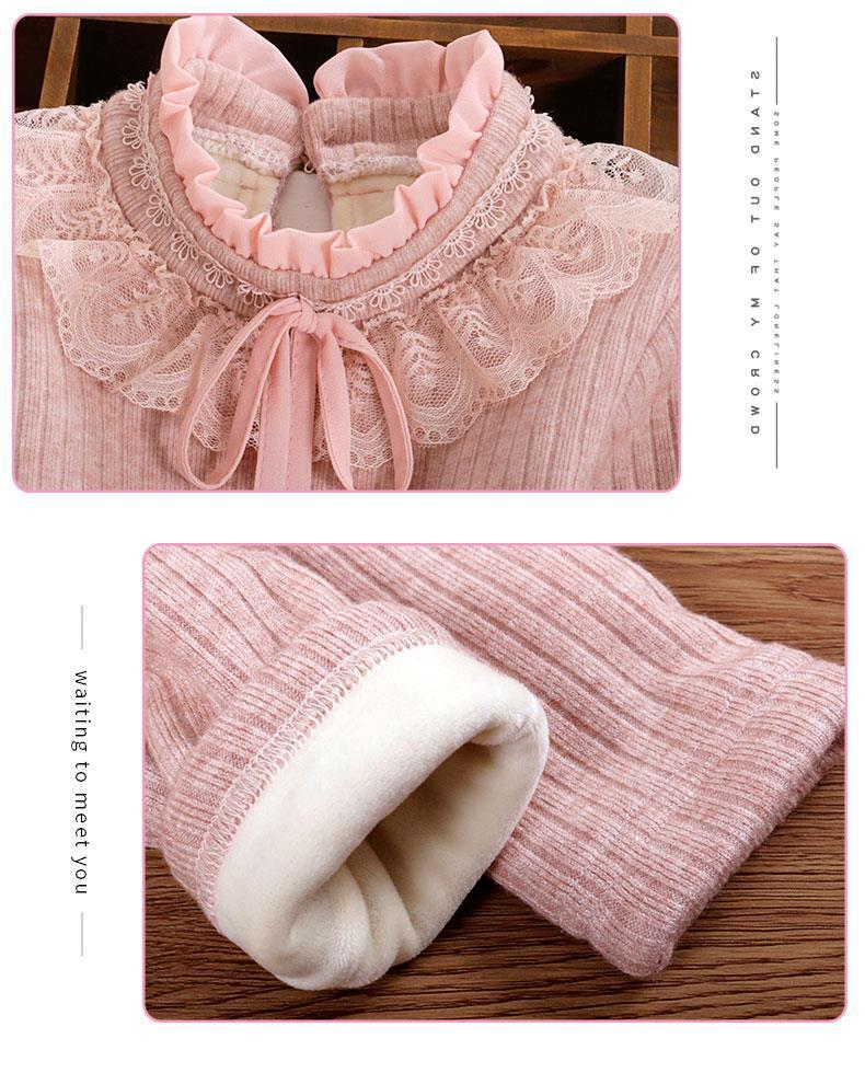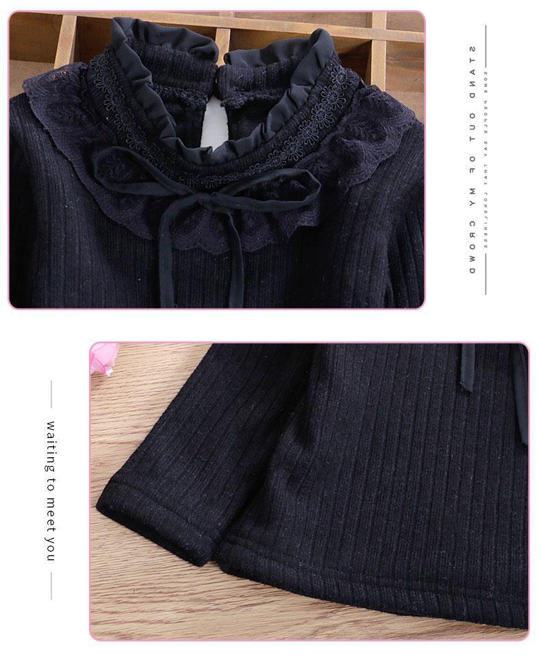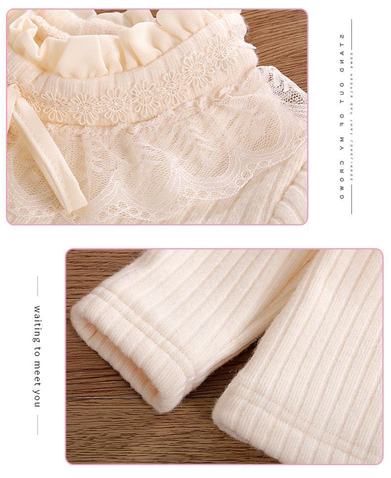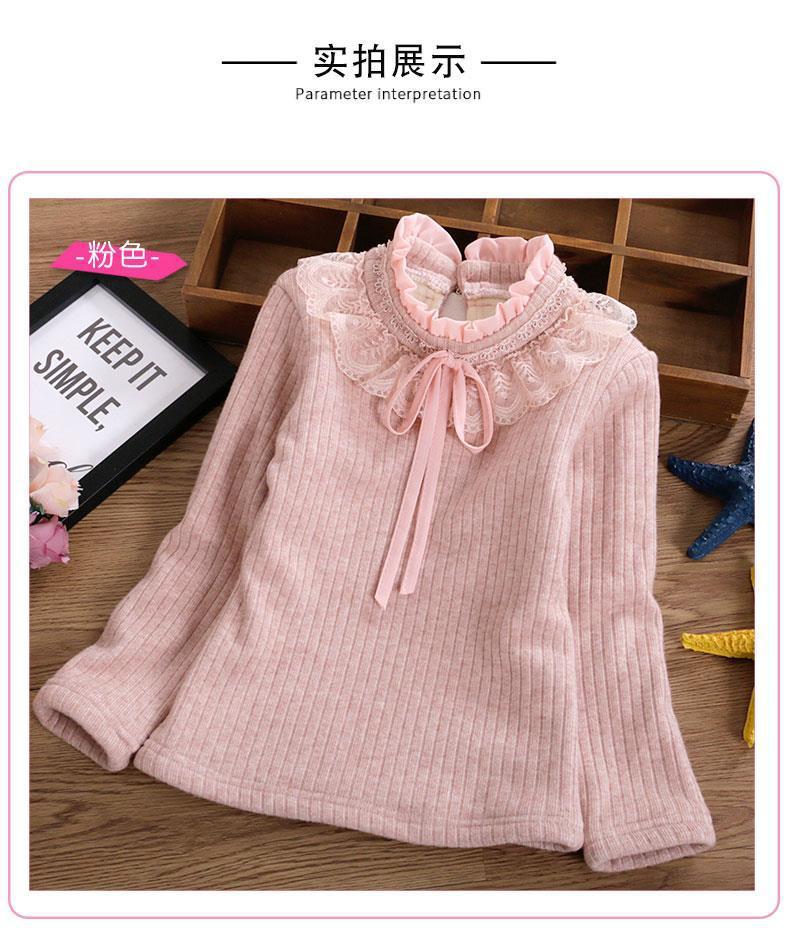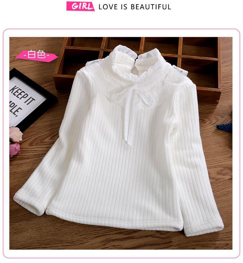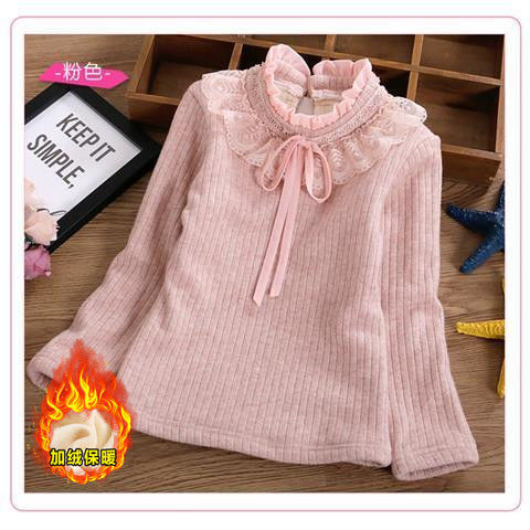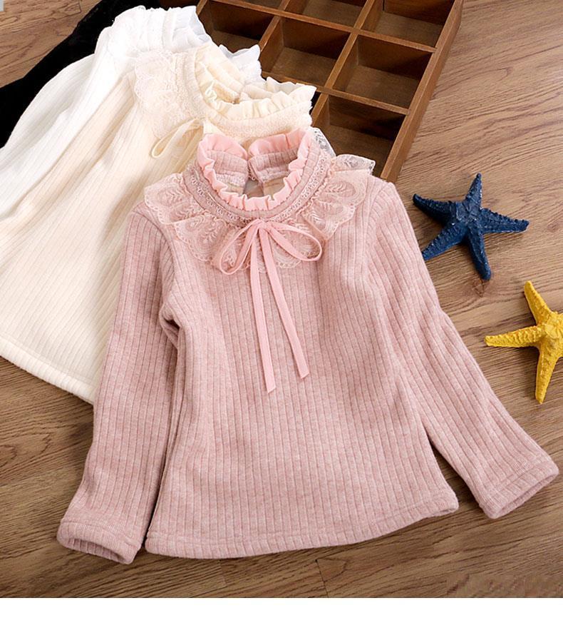 여아 하의 셔츠 가을과 겨울 원피스 어린이 서양 스타일 레이스 칼라 탑 중간 및 큰 아이 여아 니트 긴 소매 티셔츠 겨울