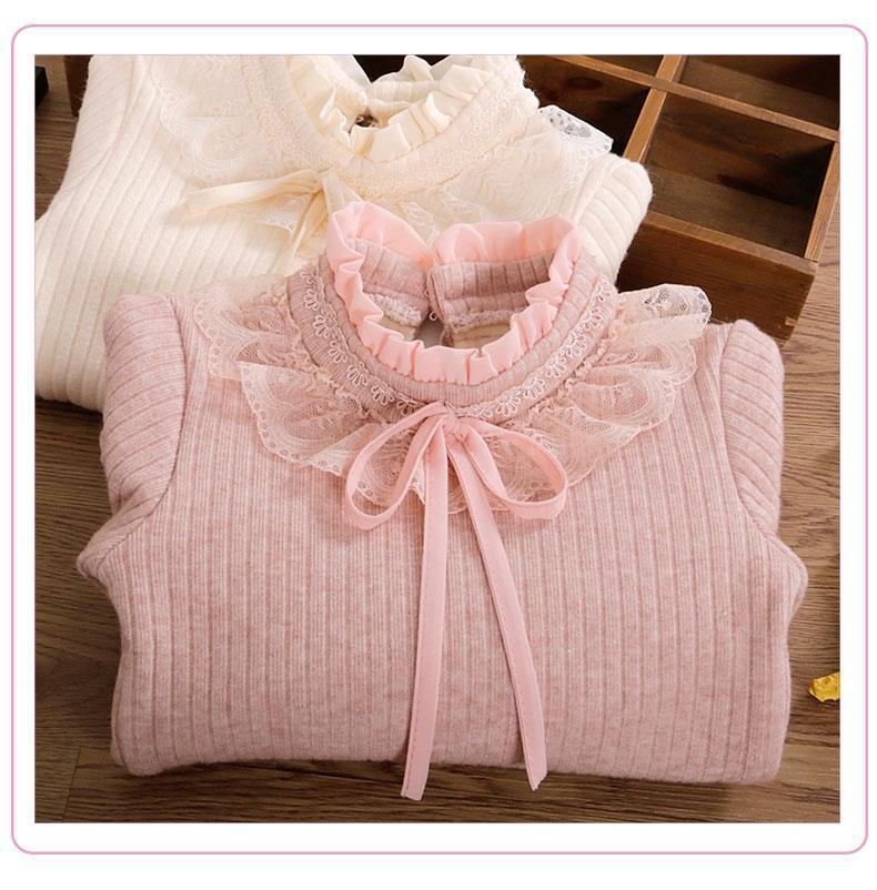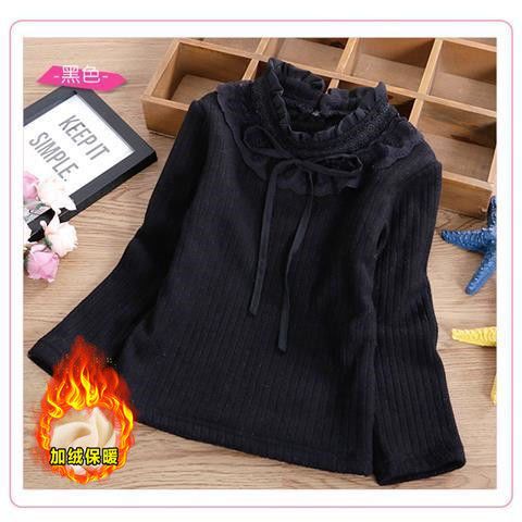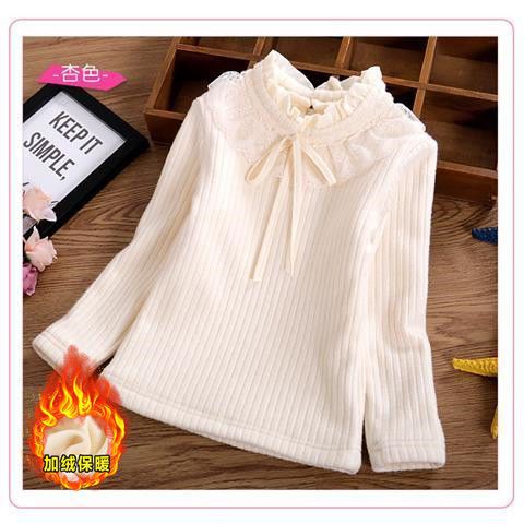 여아 하의 셔츠 가을과 겨울 원피스 어린이 서양 스타일 레이스 칼라 탑 중간 및 큰 아이 여아 니트 긴 소매 티셔츠 겨울스토어 가기