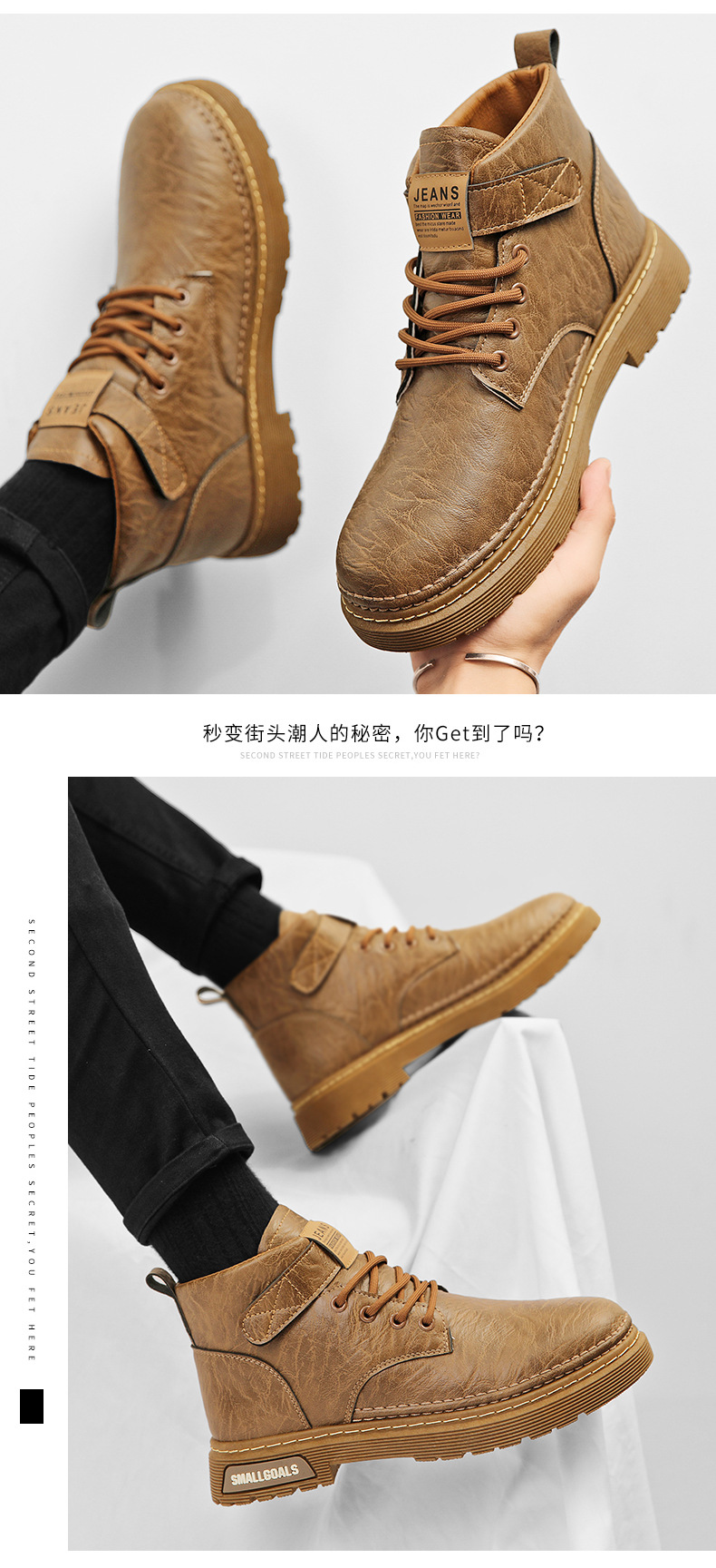 가을 새로운 라운드 헤드 남성용 마틴 부츠 레트로 가죽 영국 스타일 미드 스타일 툴링 부츠 젊은 남성 부츠스토어 가기