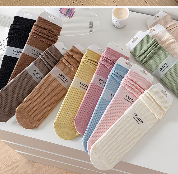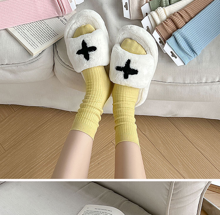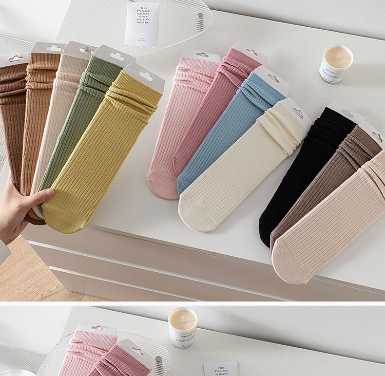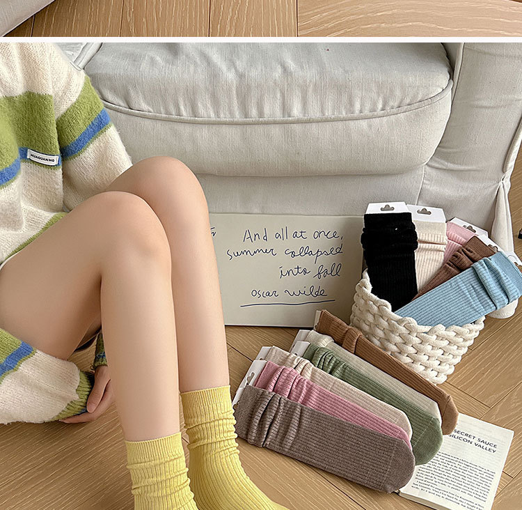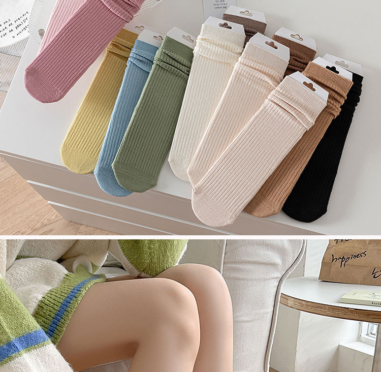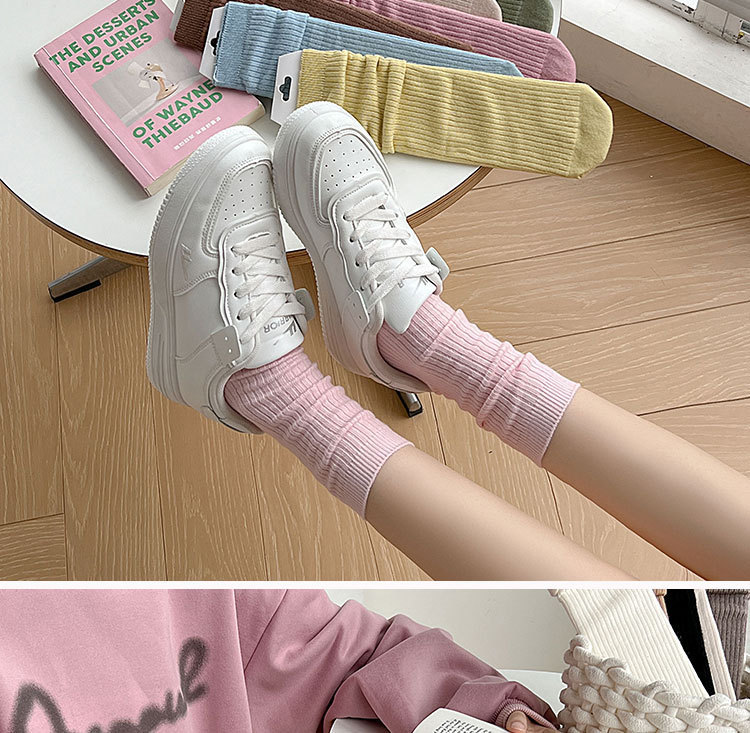 캐시미어 양말 여성용 스택 양말 캔디 컬러 미드 튜브 스택 양말 작은 가죽 신발 캐시미어 양말 여성용 가을과 겨울 면