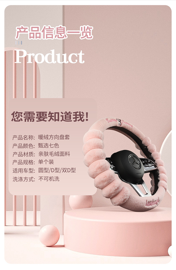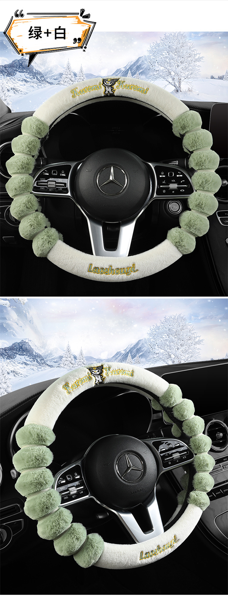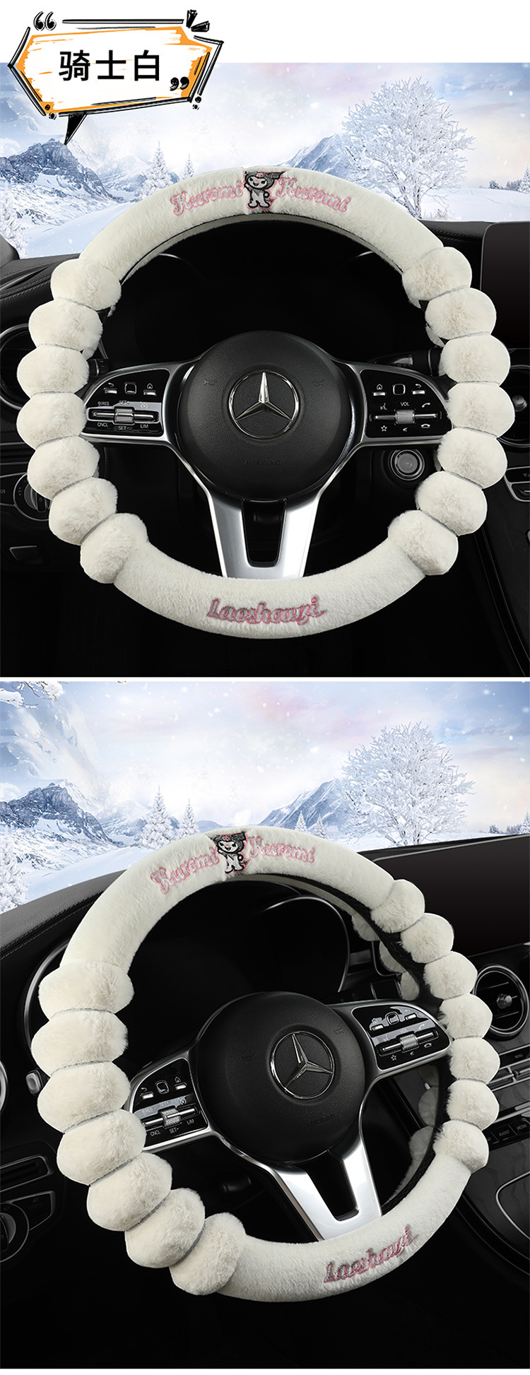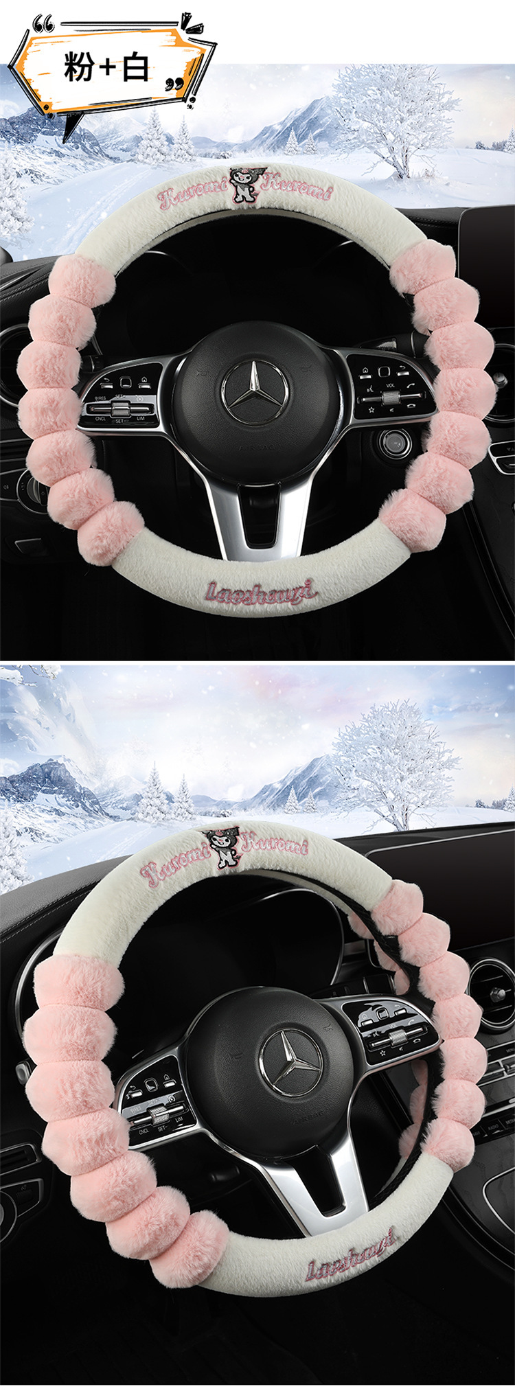 자동차 겨울 플러시 스티어링 휠 커버 자동차 핸들 커버 만화 남성과 여성의 귀여운 미끄럼 방지 따뜻한 짧은 머리 겨울 핸들 커버스토어 가기