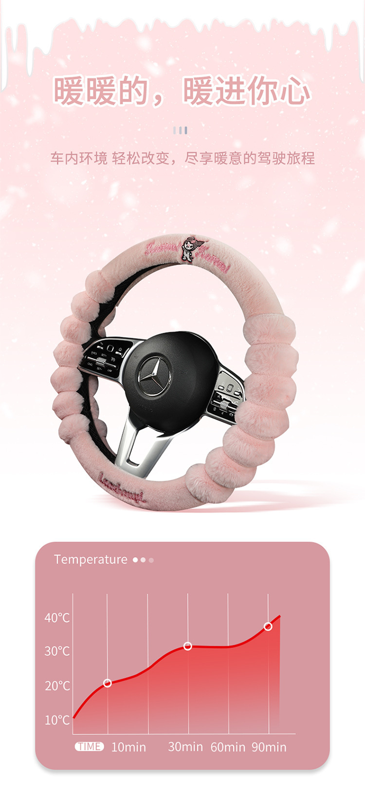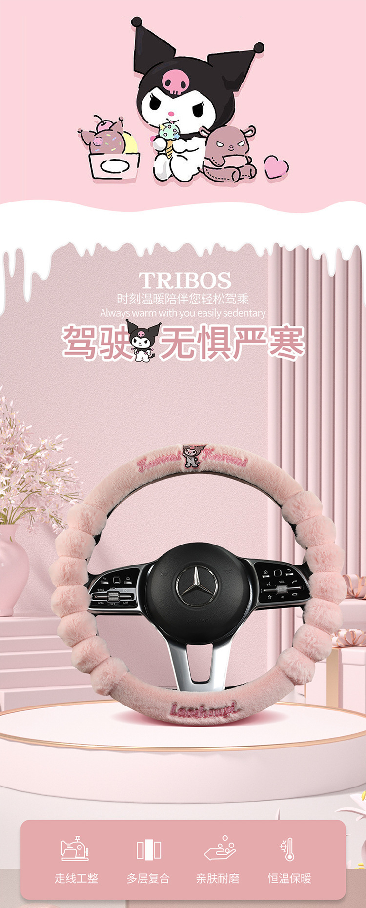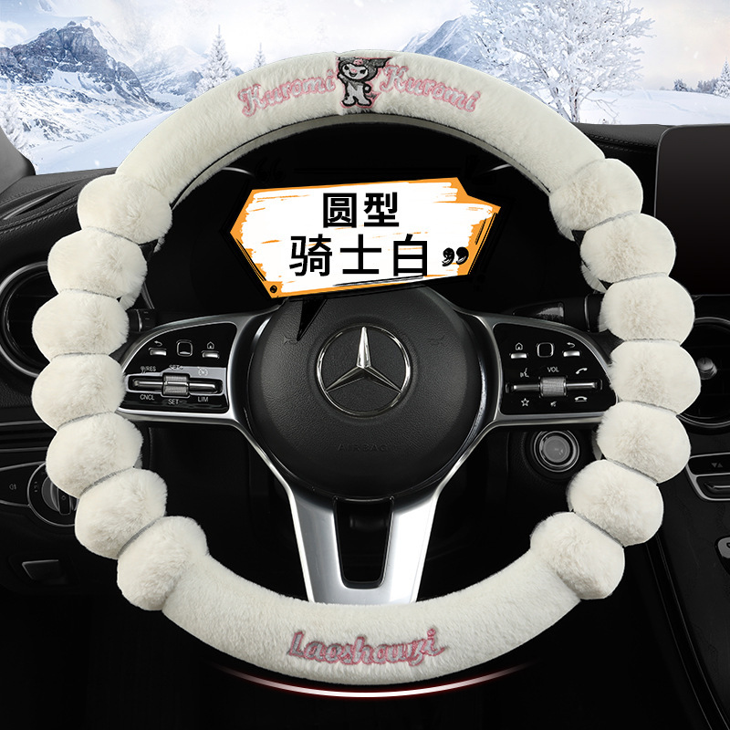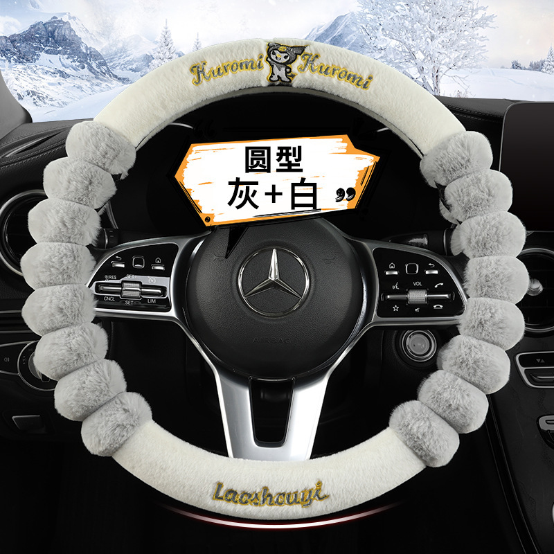 자동차 겨울 플러시 스티어링 휠 커버 자동차 핸들 커버 만화 남성과 여성의 귀여운 미끄럼 방지 따뜻한 짧은 머리 겨울 핸들 커버스토어 가기