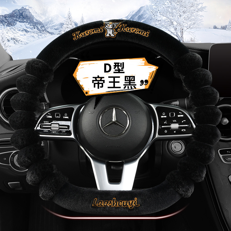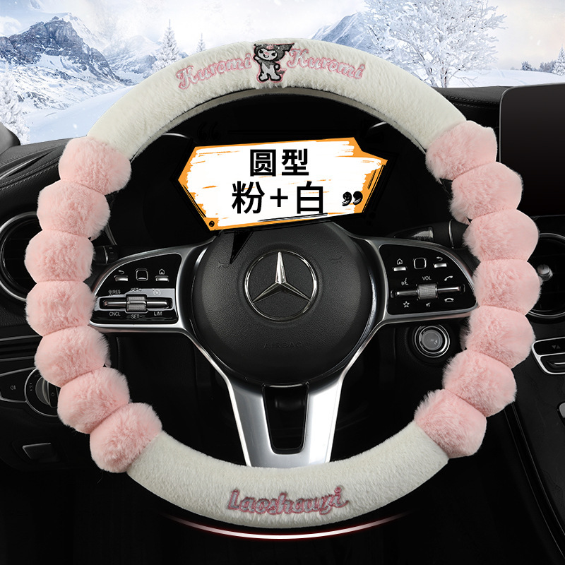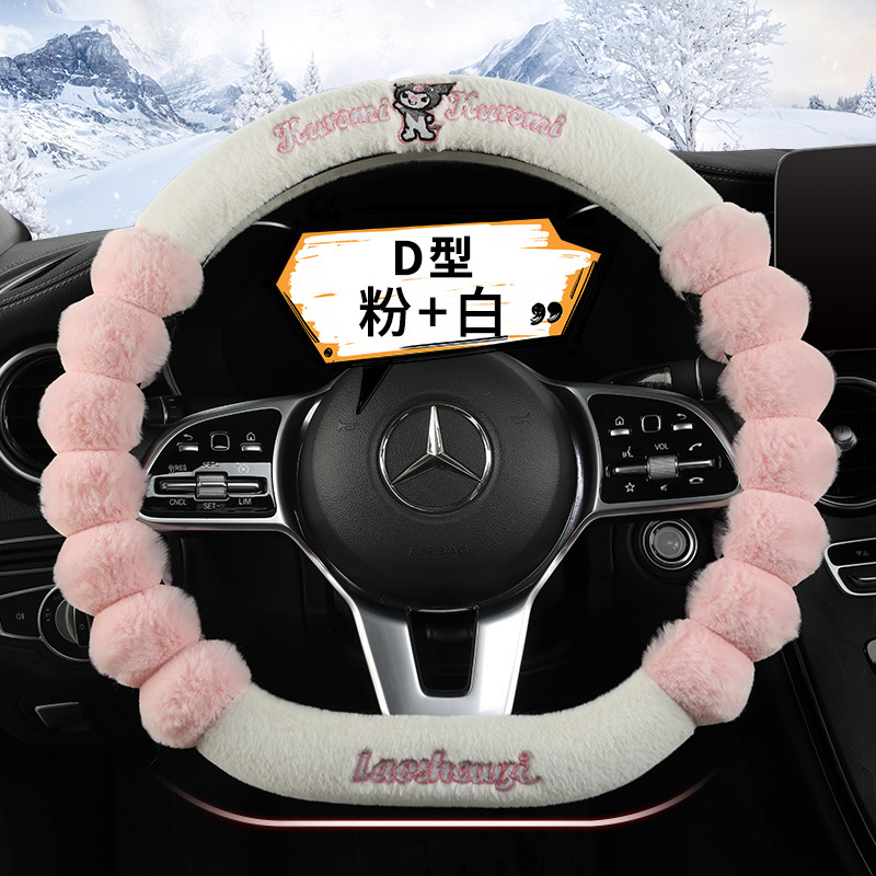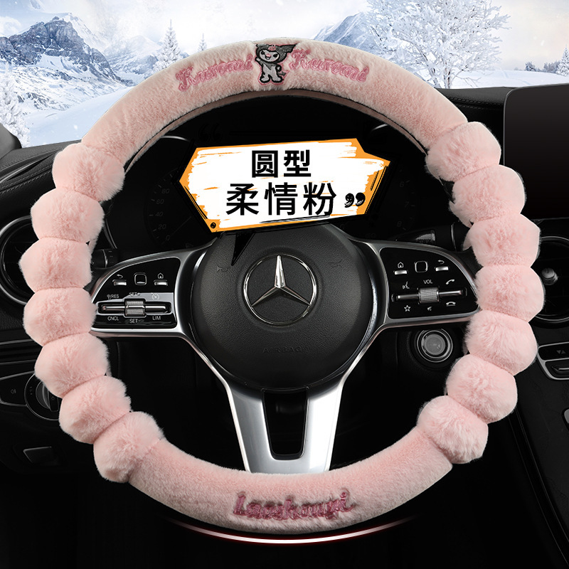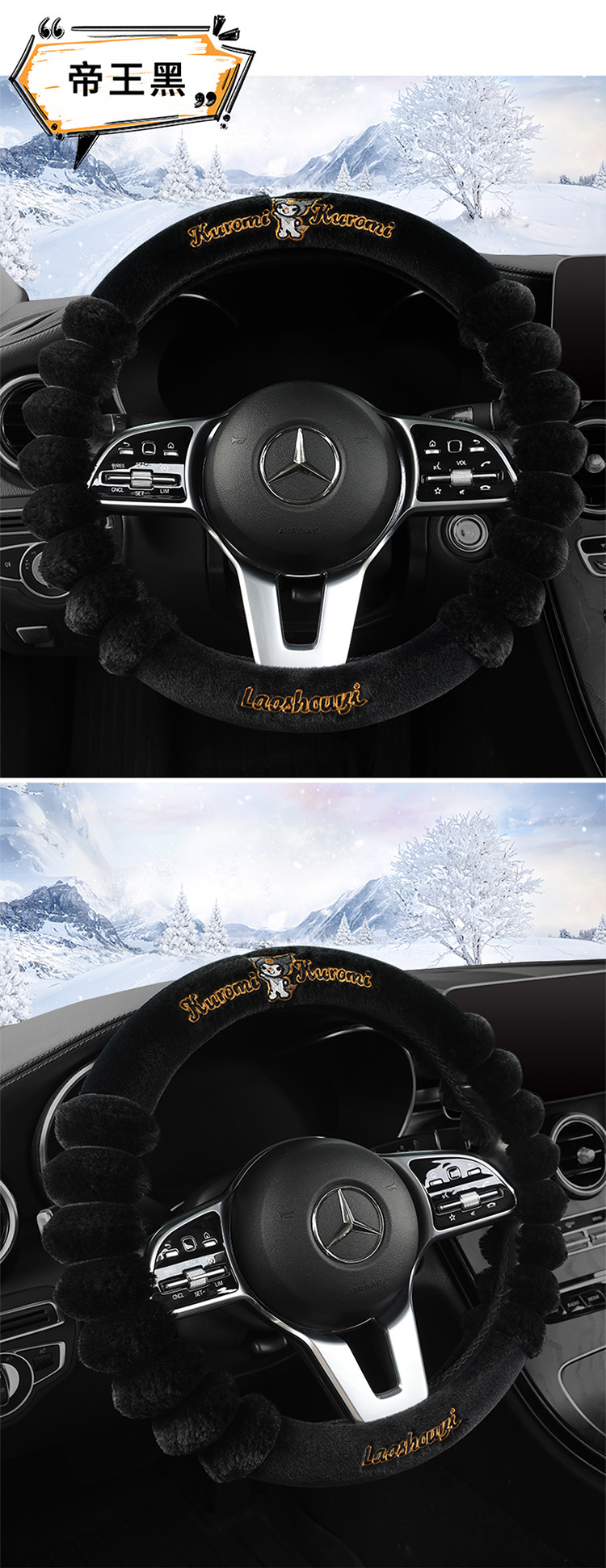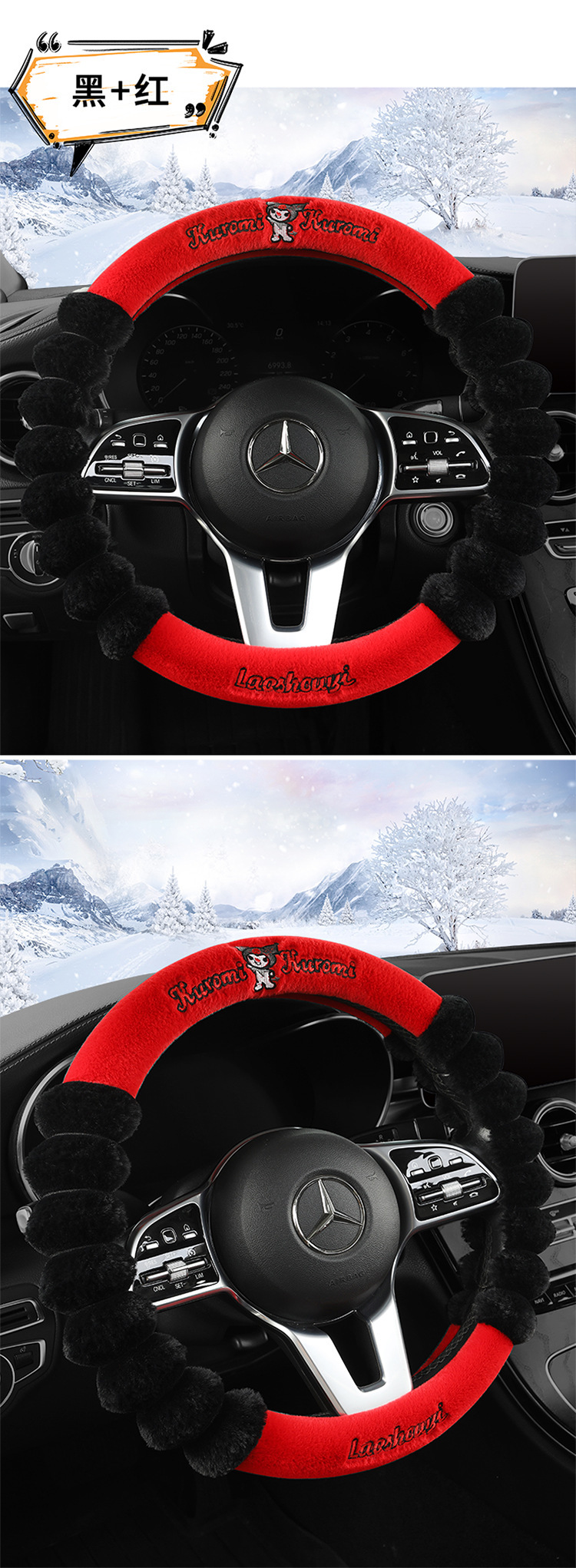 자동차 겨울 플러시 스티어링 휠 커버 자동차 핸들 커버 만화 남성과 여성의 귀여운 미끄럼 방지 따뜻한 짧은 머리 겨울 핸들 커버