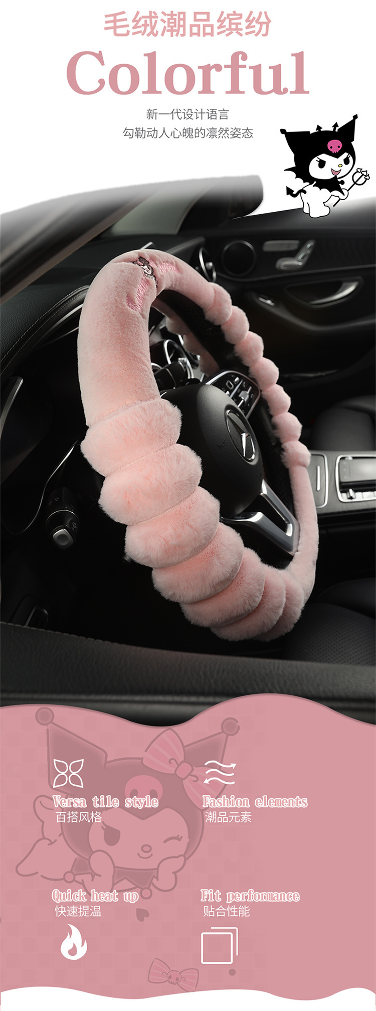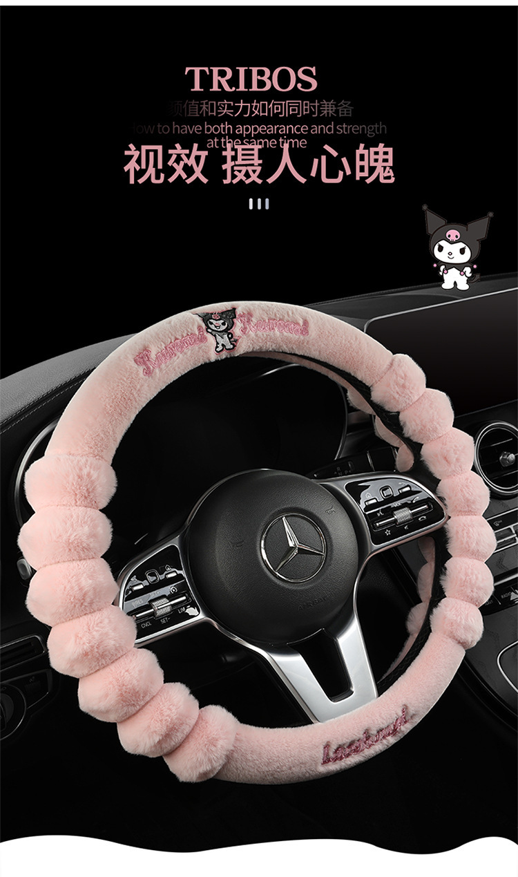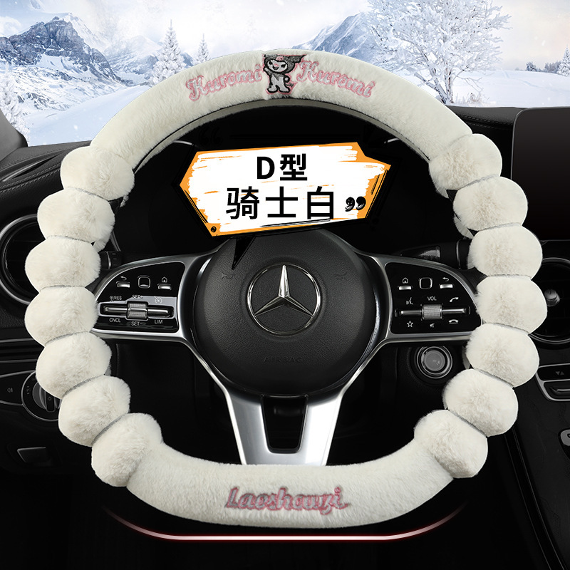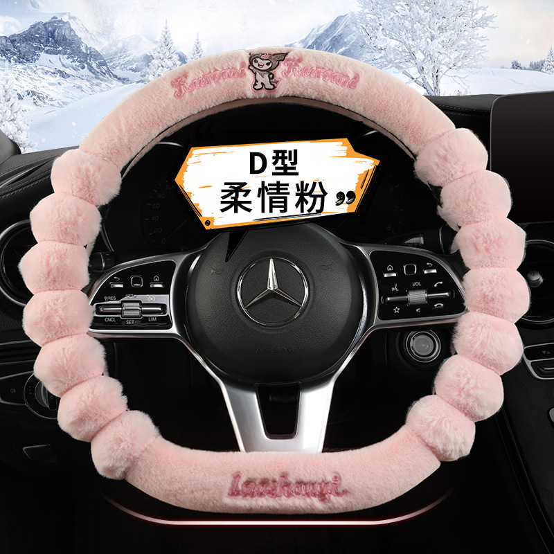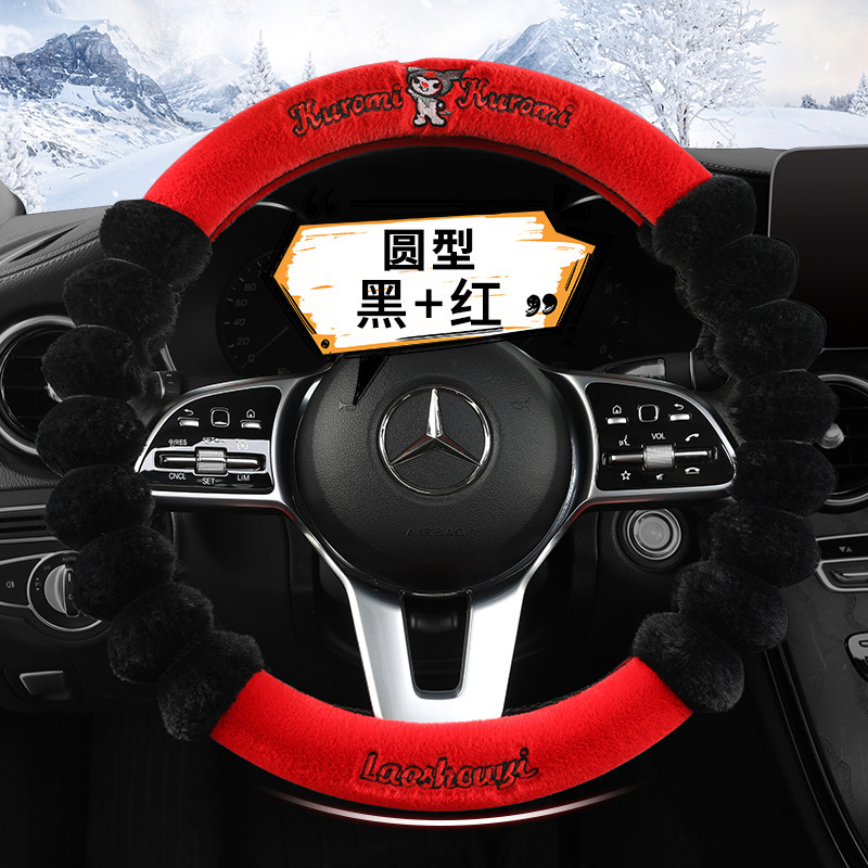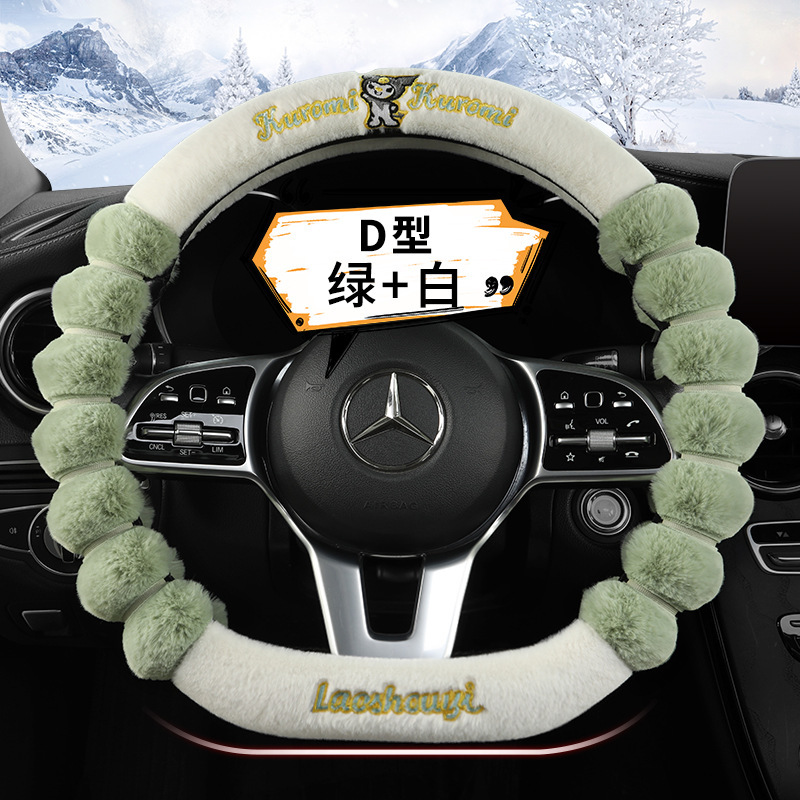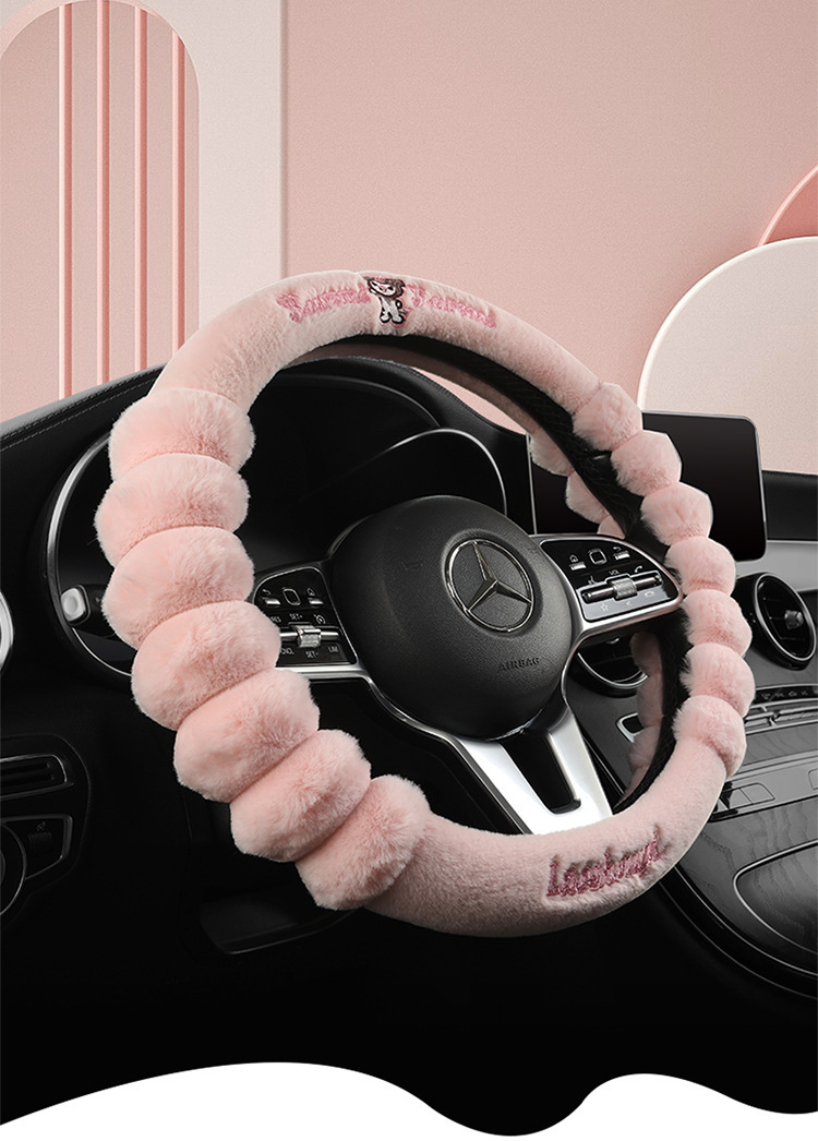 자동차 겨울 플러시 스티어링 휠 커버 자동차 핸들 커버 만화 남성과 여성의 귀여운 미끄럼 방지 따뜻한 짧은 머리 겨울 핸들 커버