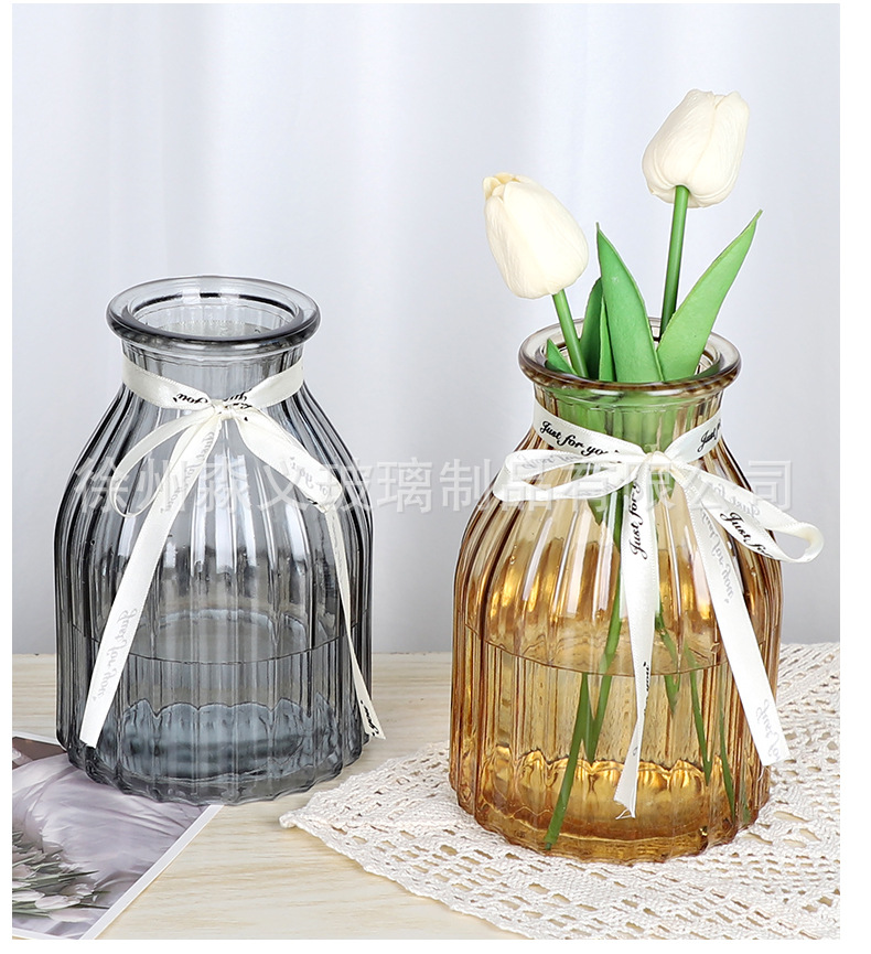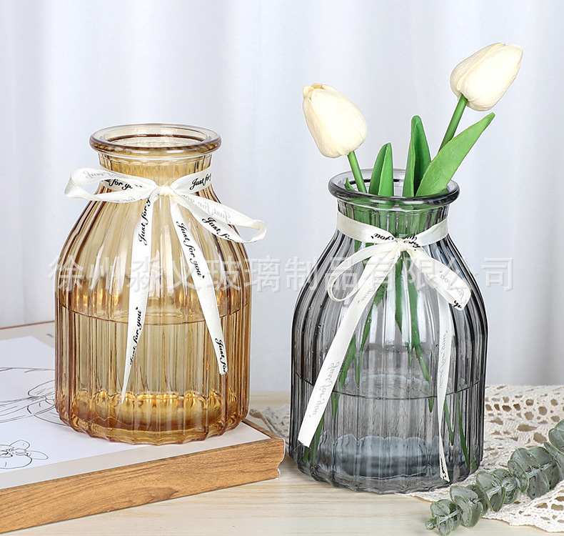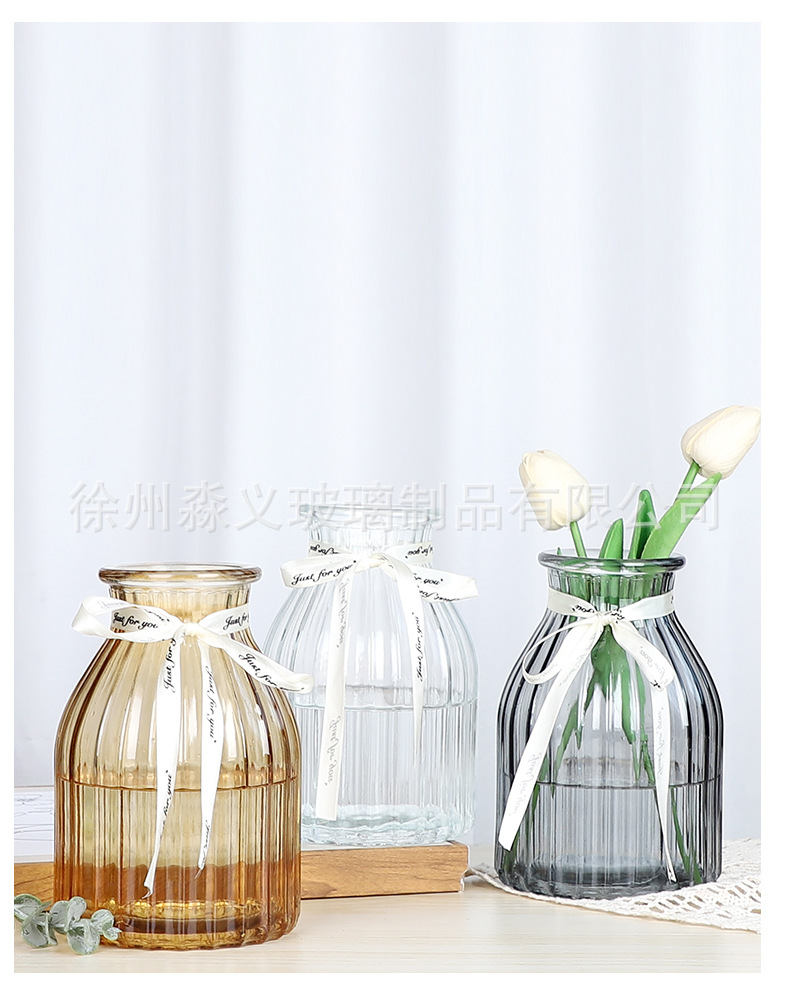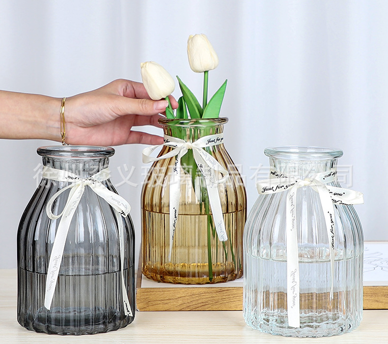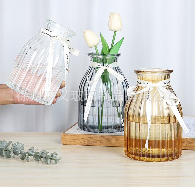 수경 색상 수직 스트립 웨이브 꽃병 홈 가구 유리 꽃병 인테리어 장식 투명 수성 꽃 거실스토어 가기