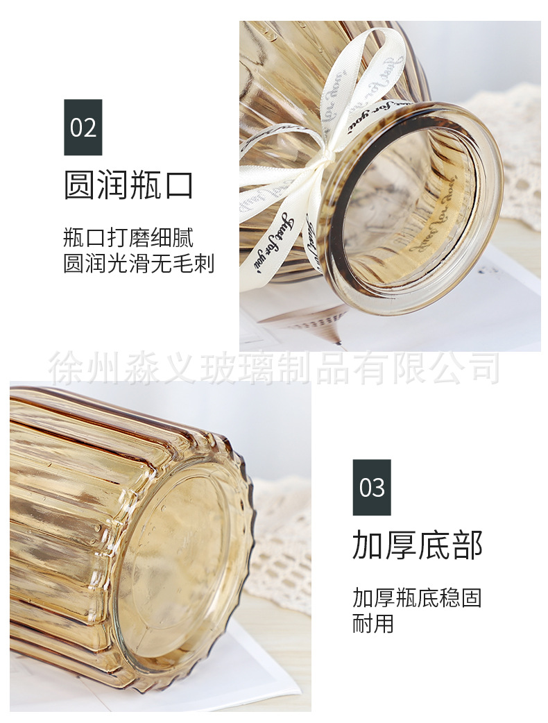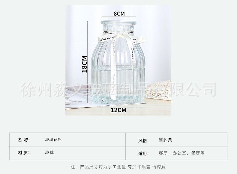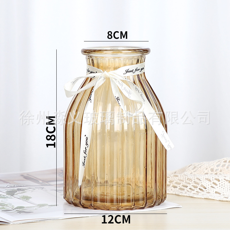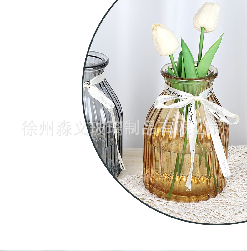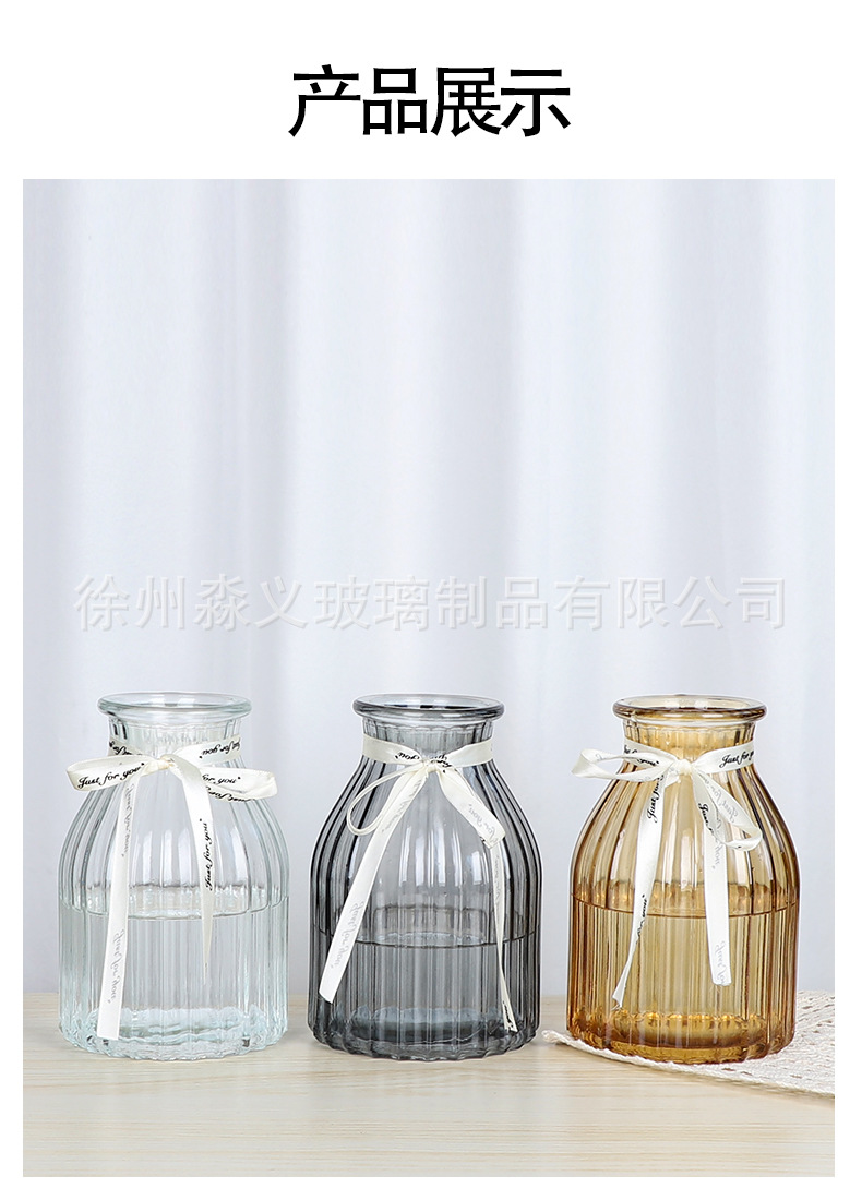 수경 색상 수직 스트립 웨이브 꽃병 홈 가구 유리 꽃병 인테리어 장식 투명 수성 꽃 거실스토어 가기