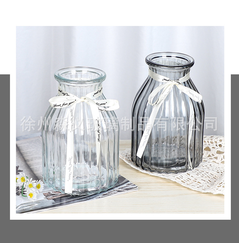 수경 색상 수직 스트립 웨이브 꽃병 홈 가구 유리 꽃병 인테리어 장식 투명 수성 꽃 거실