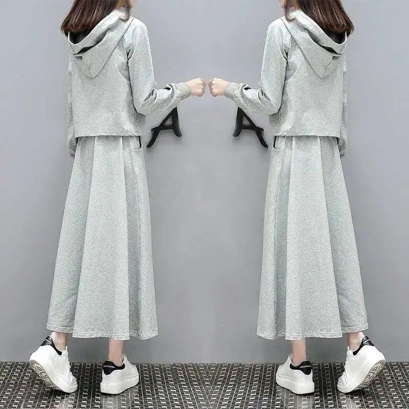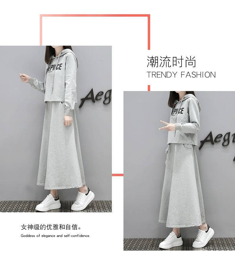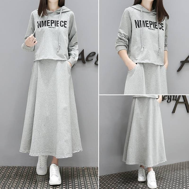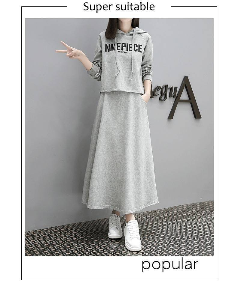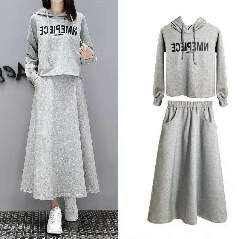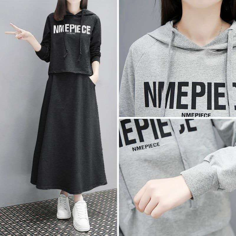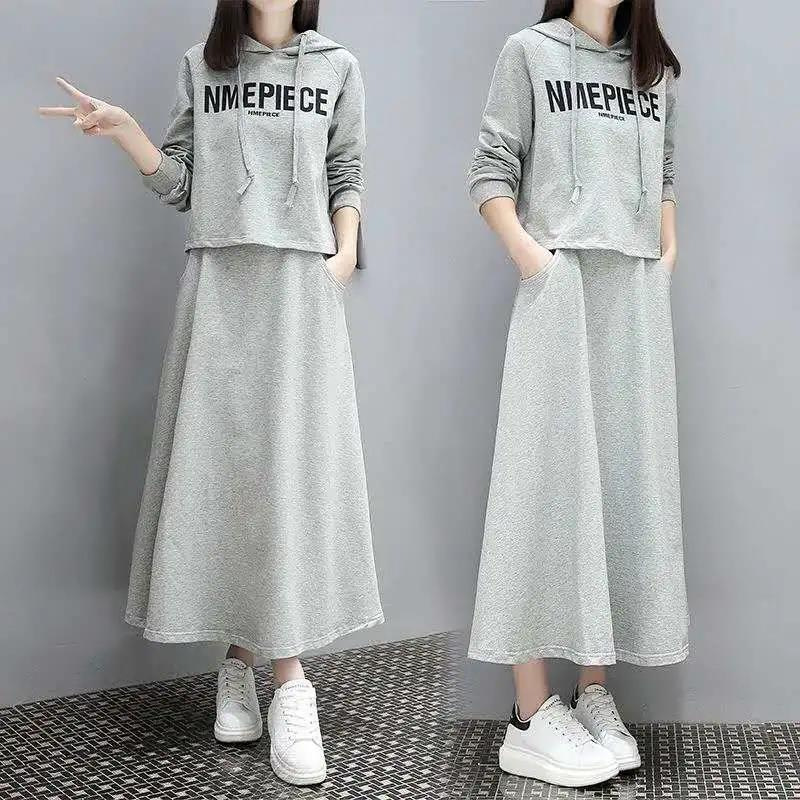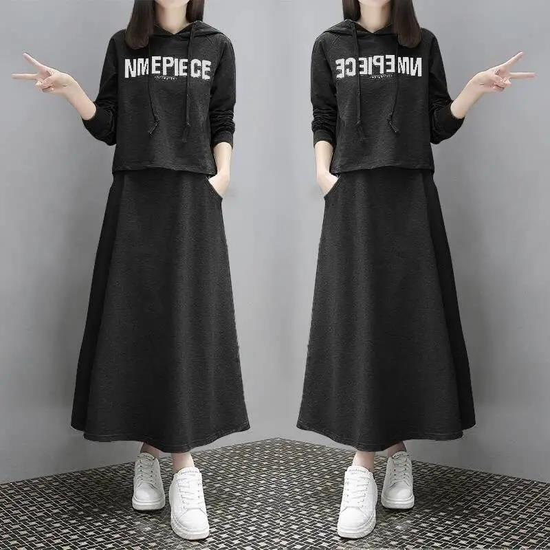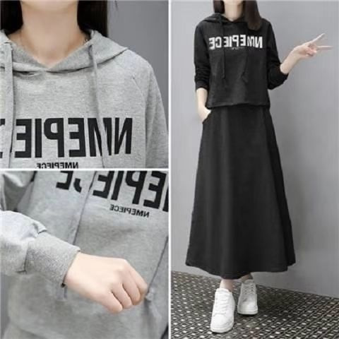 유럽 역 2024 이른 가을 새로운 긴 편지 스웨트 셔츠 여성 스커트 캐주얼 패션 느슨한 투피스 세트스토어 가기