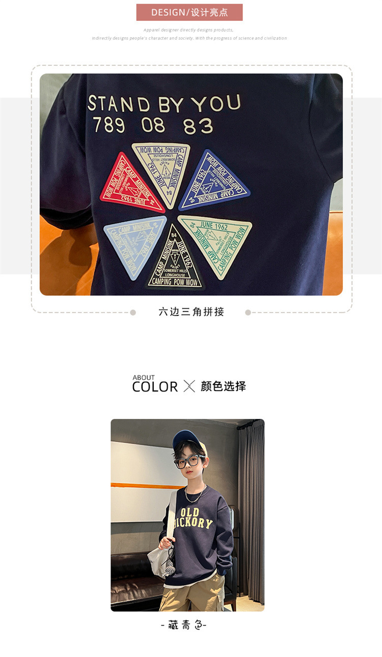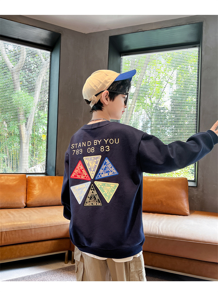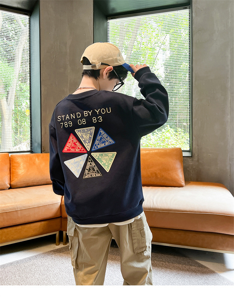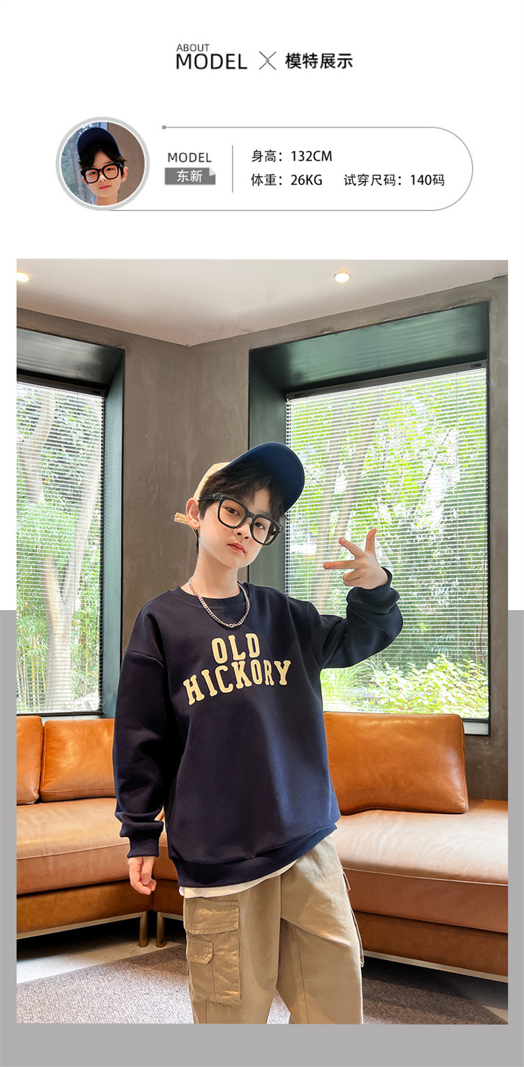 어린이 소년 크루넥 풀오버 스웨터 2023 새로운 봄과 가을 잘 생긴 소년의 큰 소년의 튀김 스트리트 탑