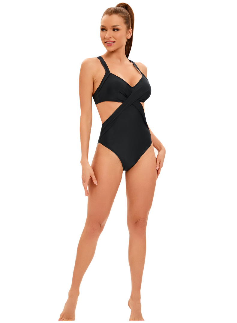 AliExpress 2023 크로스 보더 새로운 솔리드 컬러 원피스 수영복 여성 유럽 및 미국 섹시 백리스 크로스 스트랩 수영복 도매