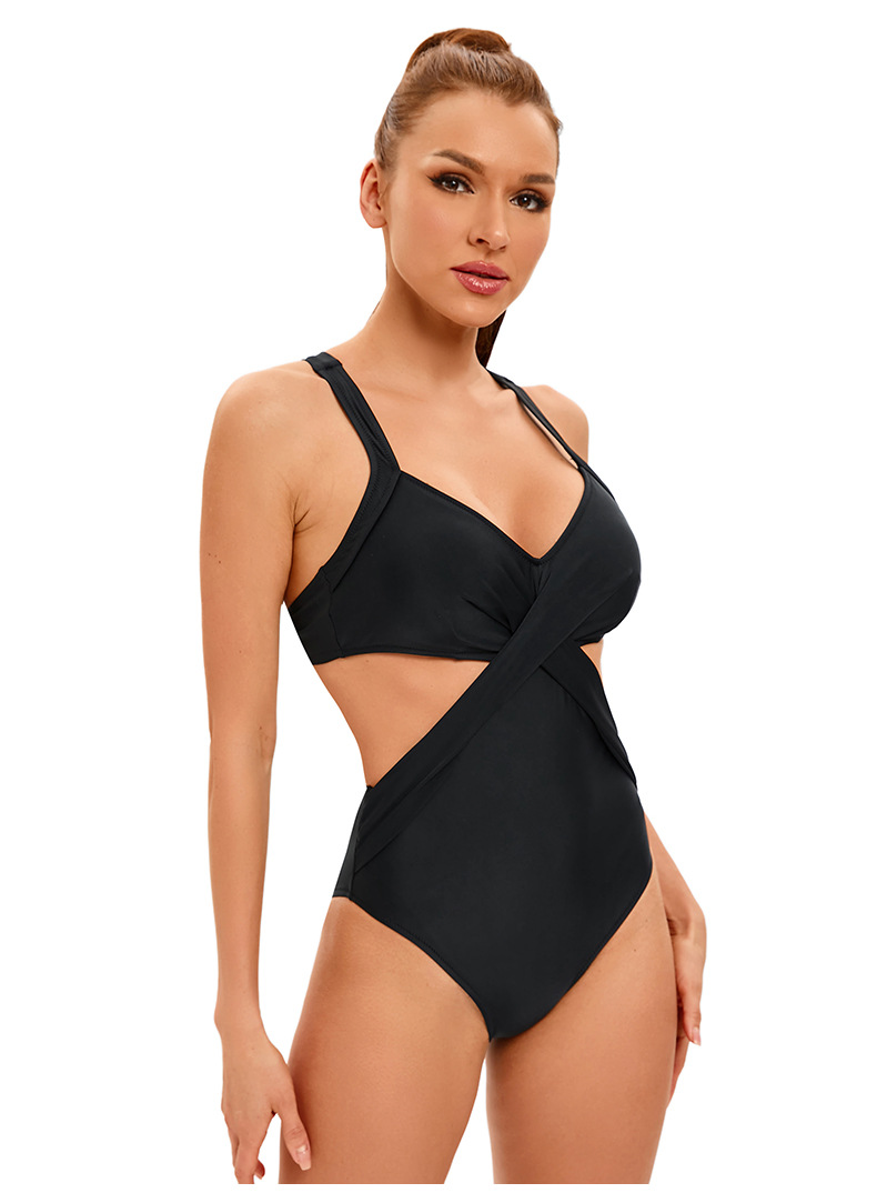 AliExpress 2023 크로스 보더 새로운 솔리드 컬러 원피스 수영복 여성 유럽 및 미국 섹시 백리스 크로스 스트랩 수영복 도매스토어 가기