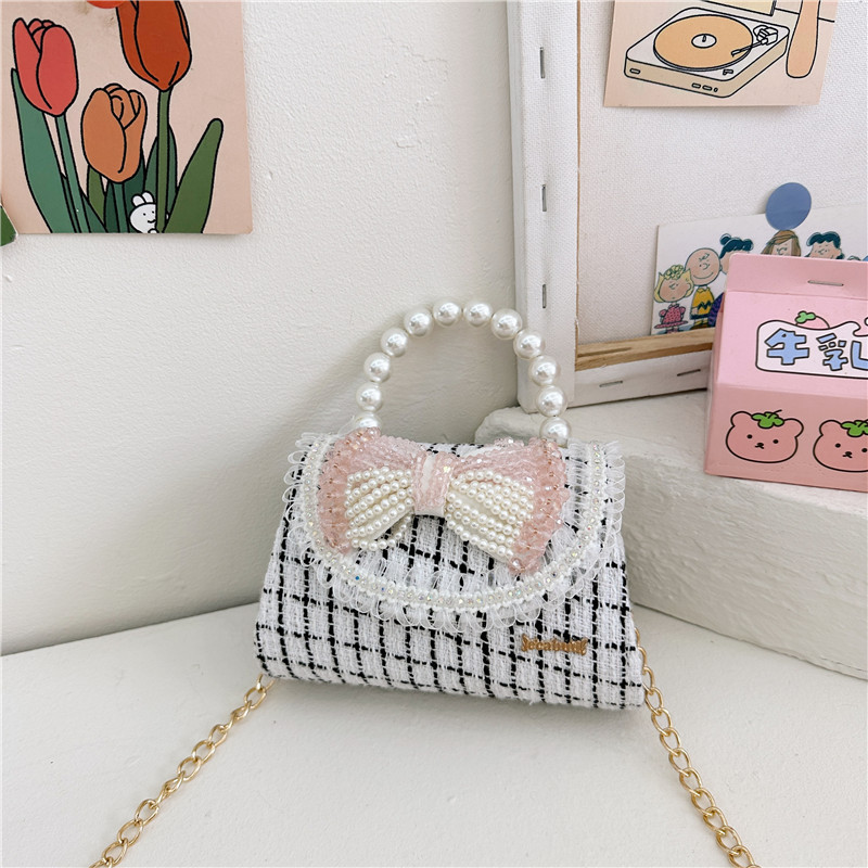 올해의 새로운 소녀 가방 메신저 가방 활 귀여운 바람 동전 지갑 진주 휴대용 패션 어린이 가방스토어 가기