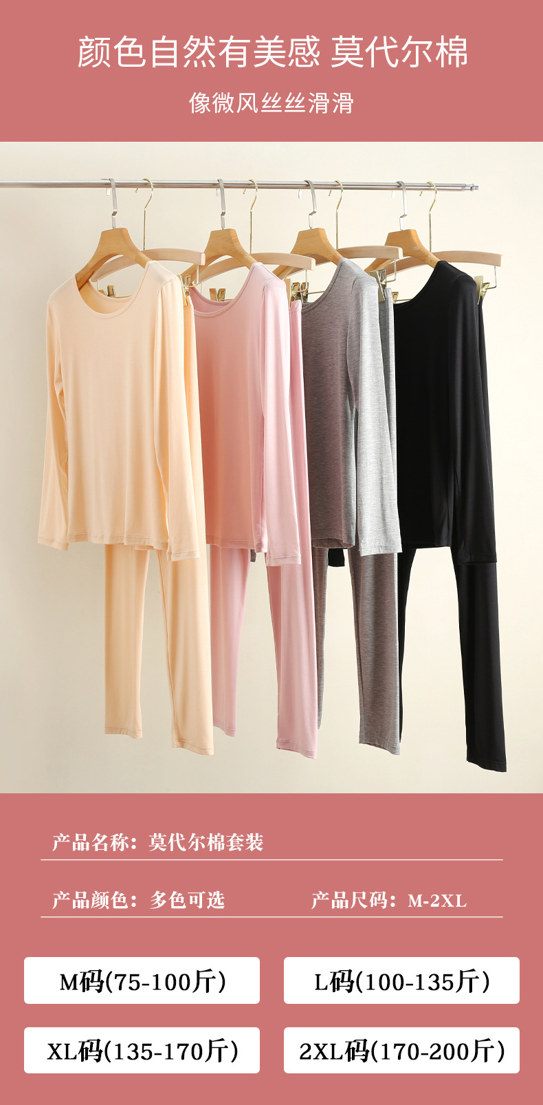 모달 가을 옷과 긴 바지 여자의 플러스 사이즈 라운드 넥 긴 소매 바닥 열 속옷 세트 꽉 바디 착용 세트스토어 가기