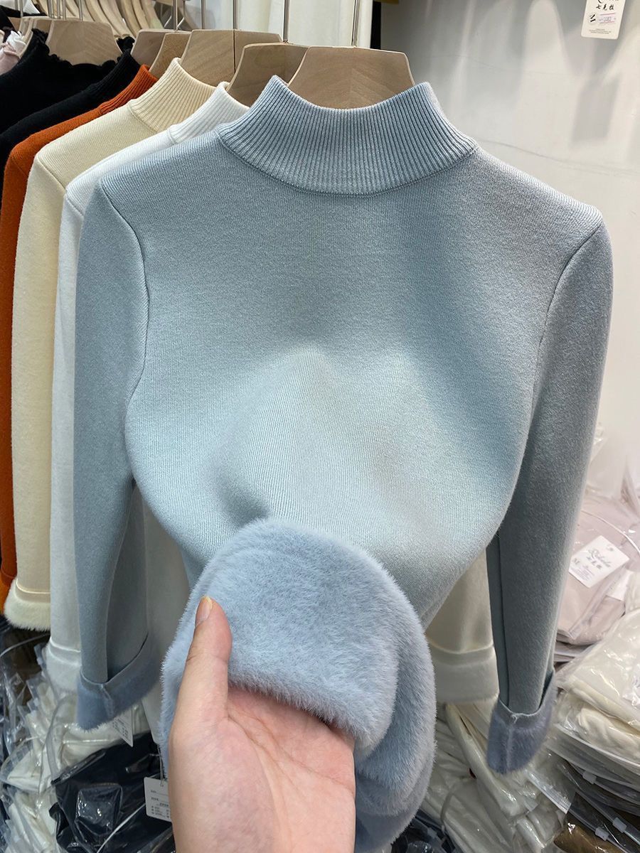 加绒水貂绒半高领毛衣女秋冬新款加厚保暖上衣一体绒打底衫内搭潮