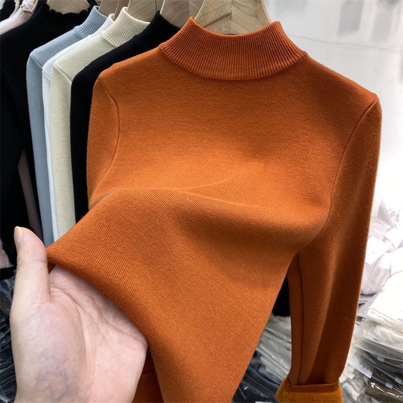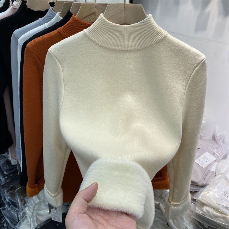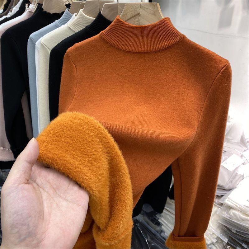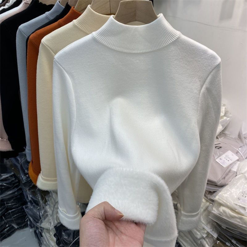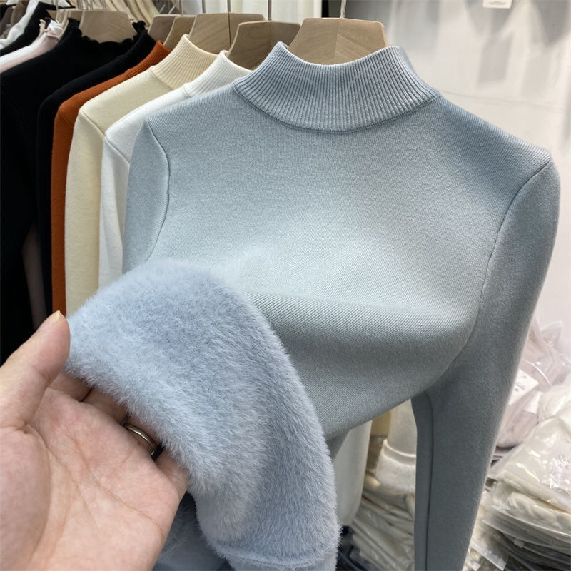 기모 밍크 양털 하프 터틀넥 스웨터 여성의 가을과 겨울 새로운 두꺼운 따뜻한 탑 원피스 양털 베이스 셔츠스토어 가기