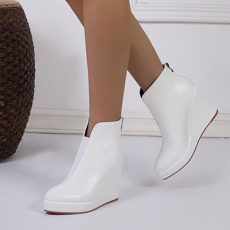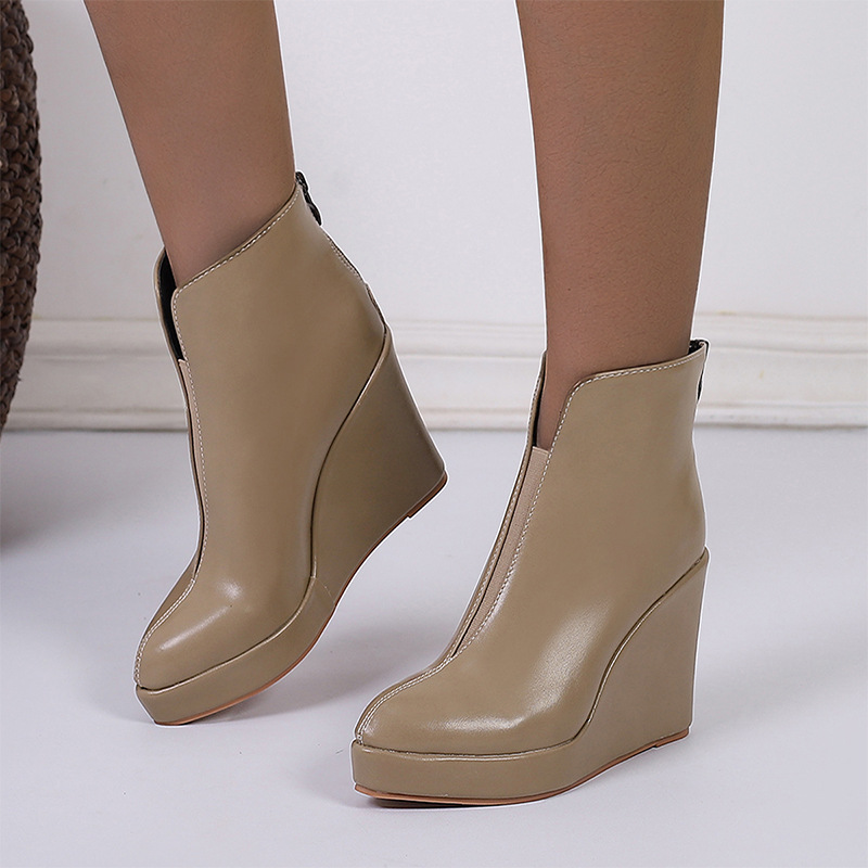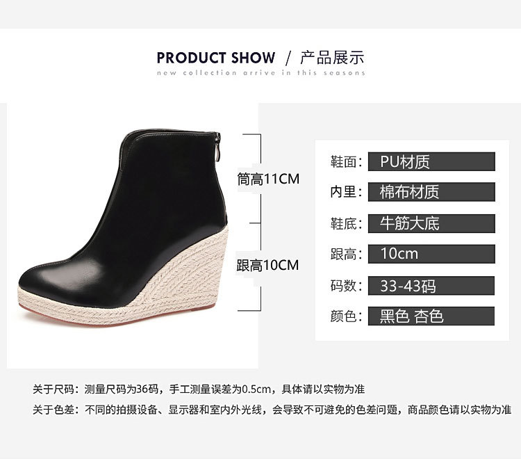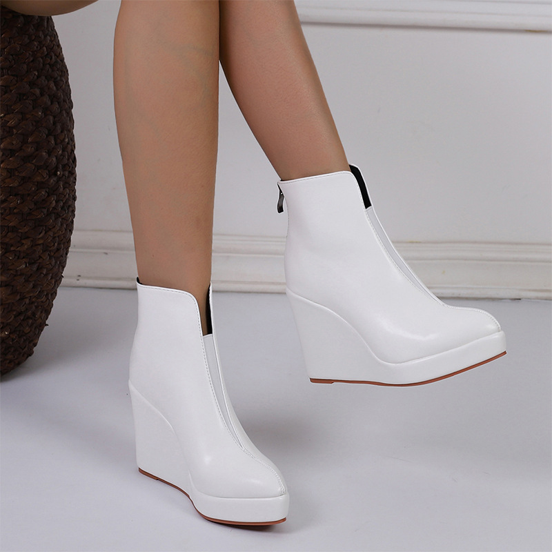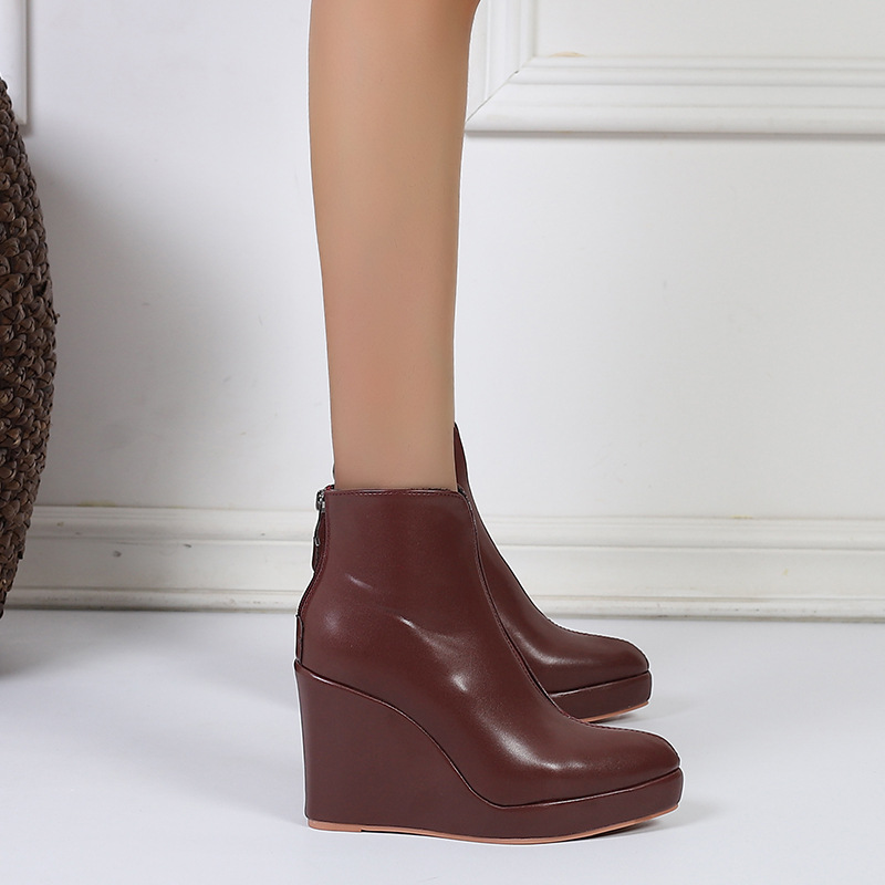 아마존 가을과 겨울 웨지 두꺼운 바닥 하이힐 뾰족한 패션 부츠 블랙 백 지퍼 AliExpress 국경 간 대외 무역