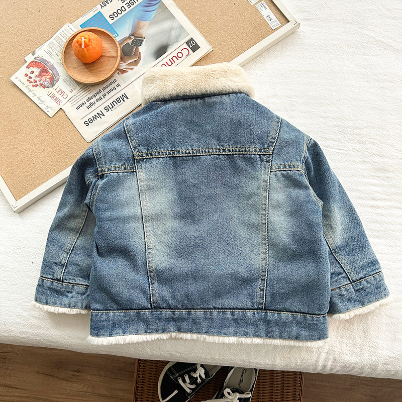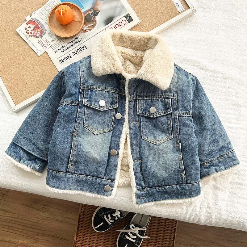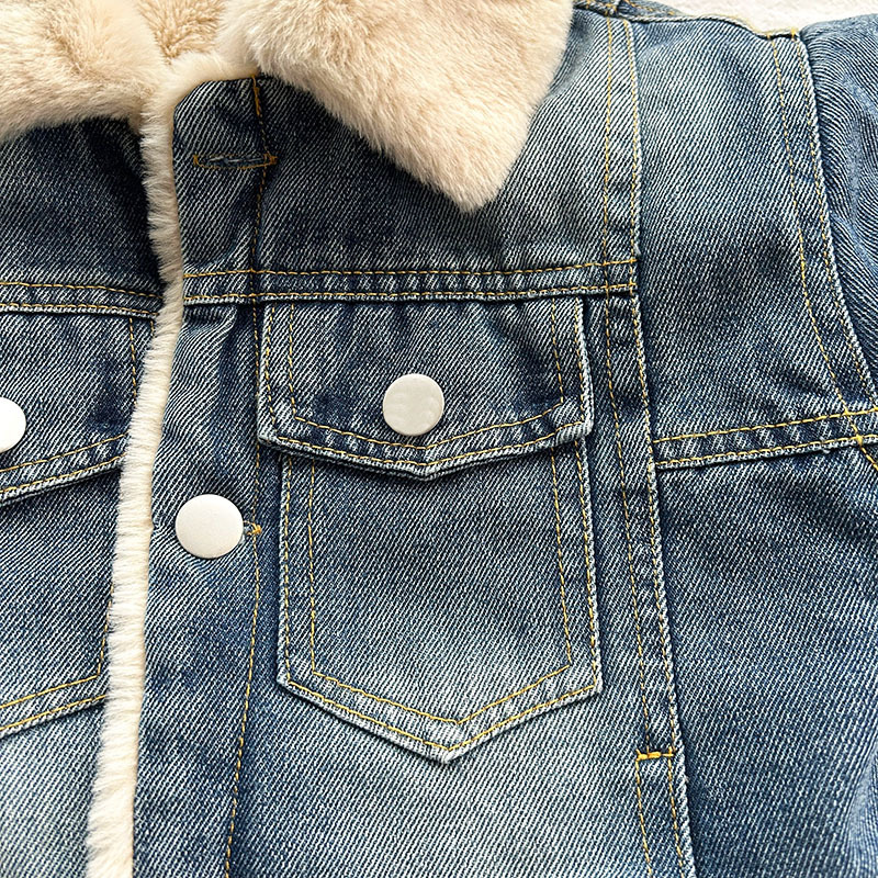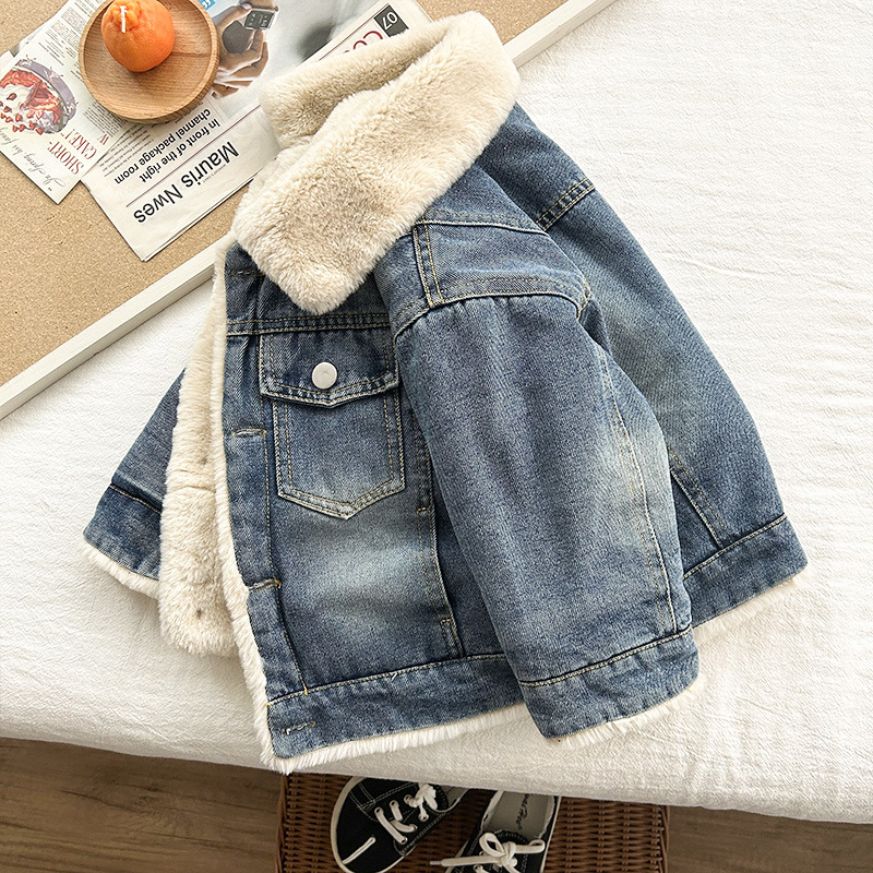 어린이 데님 코트 기모 가을 겨울 아기 새 여아 두꺼운 토끼 모피 옷깃 소년 재킷 코트스토어 가기