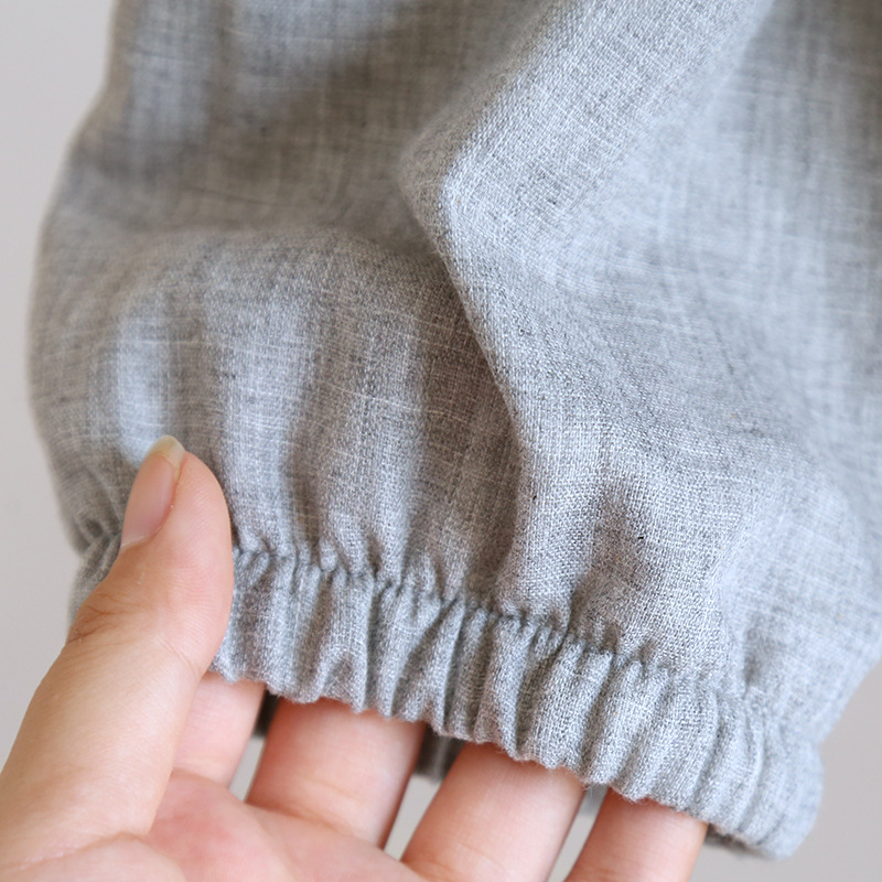 남자의 잠옷 봄과 가을 여름 간단한 인쇄되지 않은 스타일 색상 회전 순면 거즈 얇은 긴 소매 새로운 스타일 가정 옷 세트