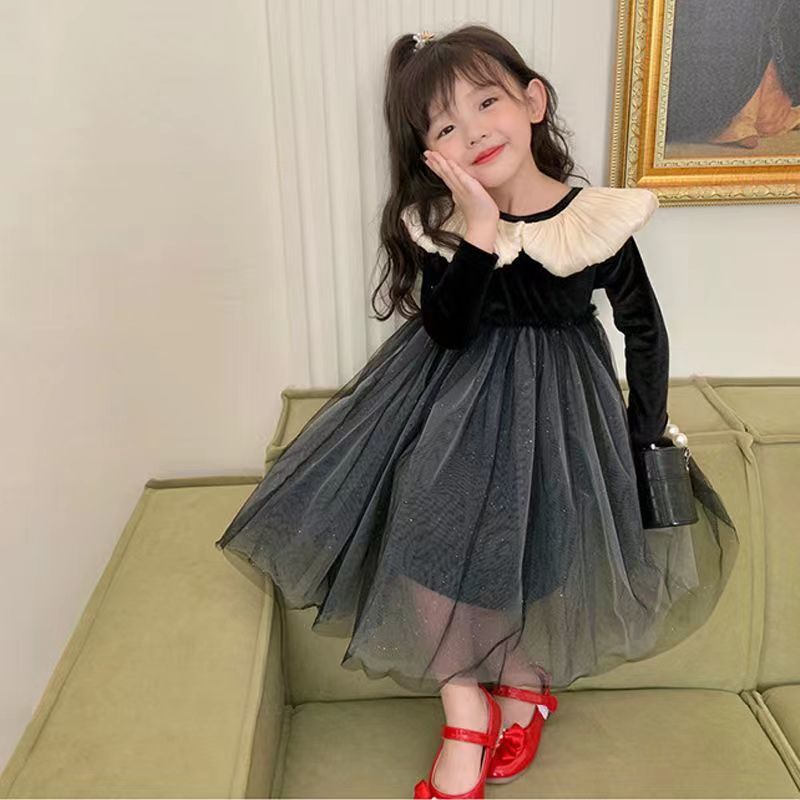 한국 아동 의류 소녀 봄과 가을 서양 스타일 소녀 벨벳 메쉬 원피스 공주 원피스 어린이 유행 원피스스토어 가기